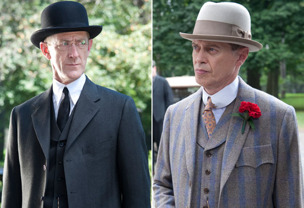 Most important, though, are two black suits. Nucky comes to meet Jimmy and declare his resignation, noble in a razor-sharp double-breasted funeral suit. Jimmy is also in black, poised for greatness, but showing signs of immature and violent emotions. Both gentlemen have come a long way since we met them …quot; in Easter pastel silks and rough blue woolens, respectively. Now they come together in black, seemingly as equals. But as Eli says to a drunken Jimmy: It would be foolish to ever underestimate Nucky Thompson.