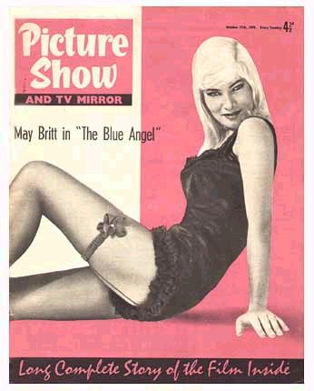 In the late 1950s, Britt relocated to Hollywood after signing with 20th Century Fox. She starred in a few movies, including The Young Lions with Marlon Brando and Murder, Inc. with Peter Falk, as well as a much-criticized remake of The Blue Angel in the legendary role first created by Marlene Dietrich in 1930.