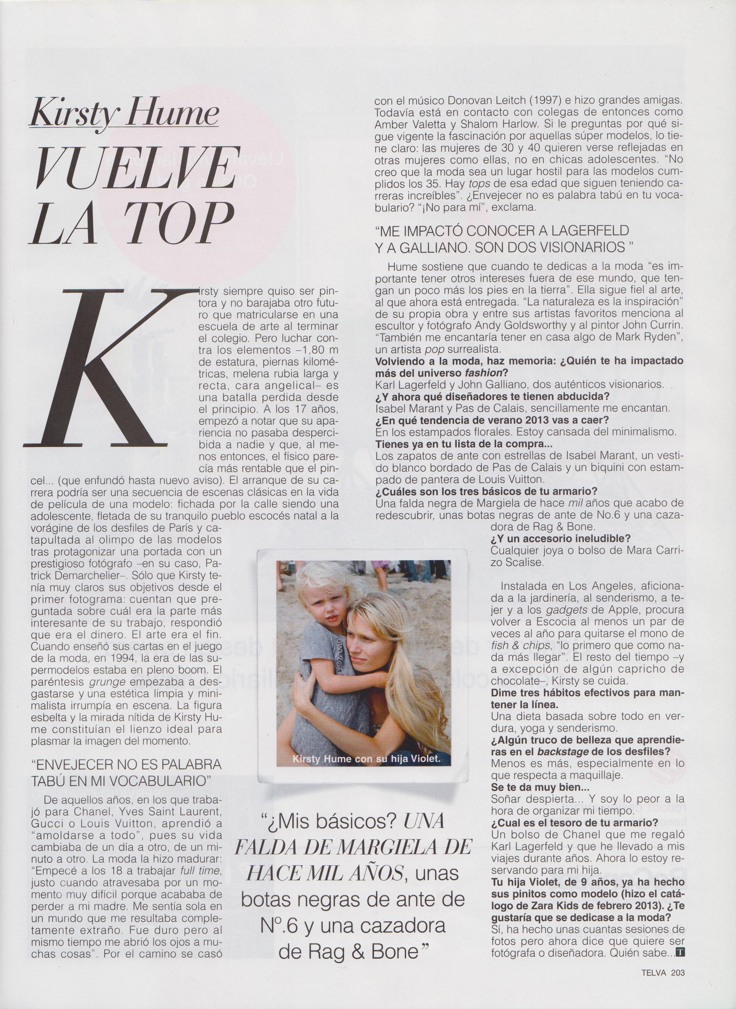 She has editorial inside Spanish Telva magazine June 2013, let me know if you need those scans