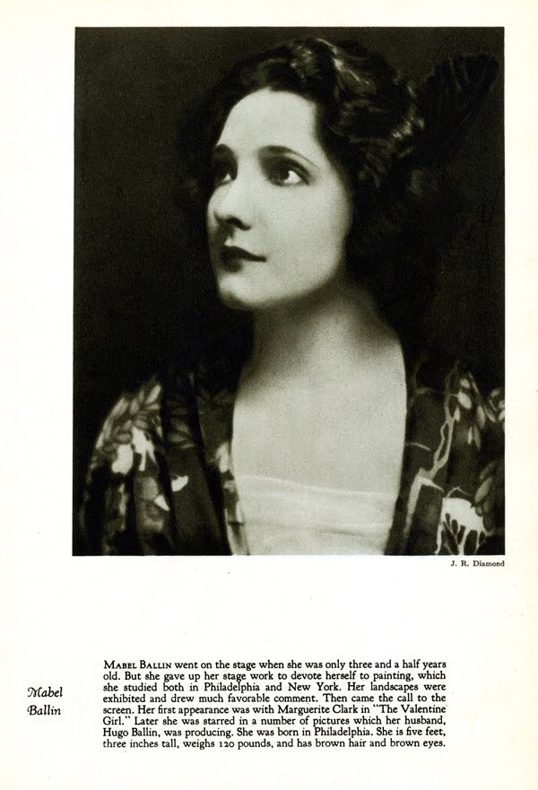 Born Mabel Croft in Philadelphia, Pennsylvania, she originally studied painting. Her landscapes were noticed at an exhibition and led to an offer to appear in films. Ballin appeared in 28 films between 1917 and 1925. She achieved popularity during World War I. She married artist-turned-director Hugo Ballin in 1917, and they remained married until his death in 1956. She died two years after in Santa Monica, California. They were interred in Woodlawn Memorial Cemetery in Santa Monica.