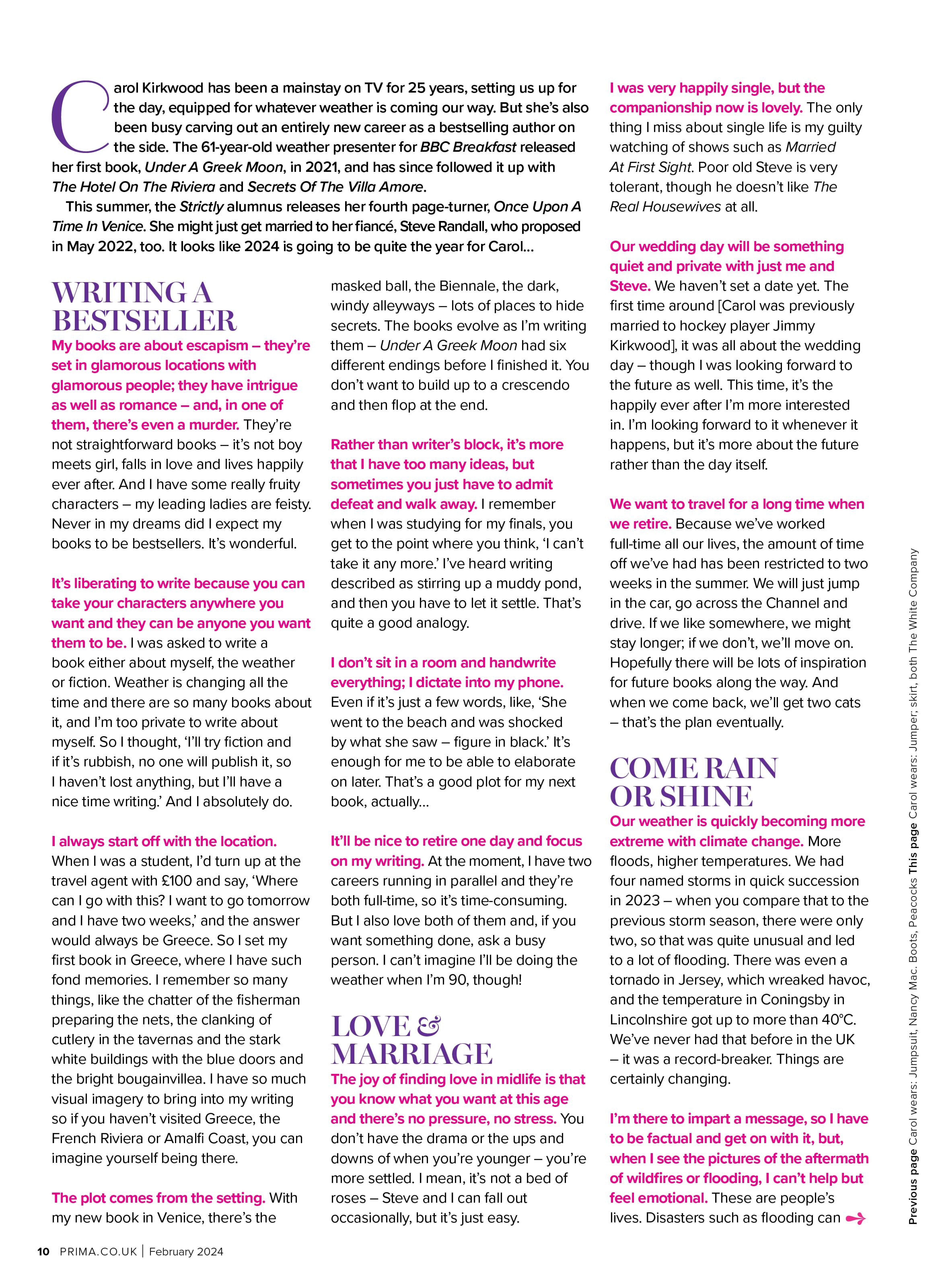 Carol Kirkwood is a Scottish journalist, presenter and weather forecaster, employed by the Met Office and best known for forecasting the weather for BBC Breakfast.