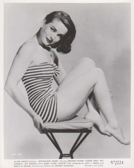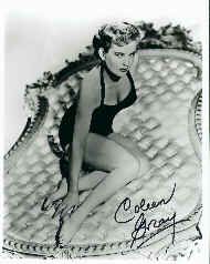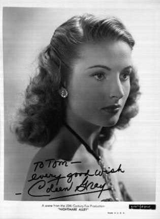"When I attended the University, I daydreamed about being a movie star. I would do my dressing room in Early American and give lovely presents to my make-up man and hairdresser for making me look so lovely, and so on. When I got my contract at 20th I was in seventh heaven, but I found out that a movie career is mostly hard work laced with disappointments".--Coleen Gray, quoted in The Boston Sunday Post, November 9, 1947
