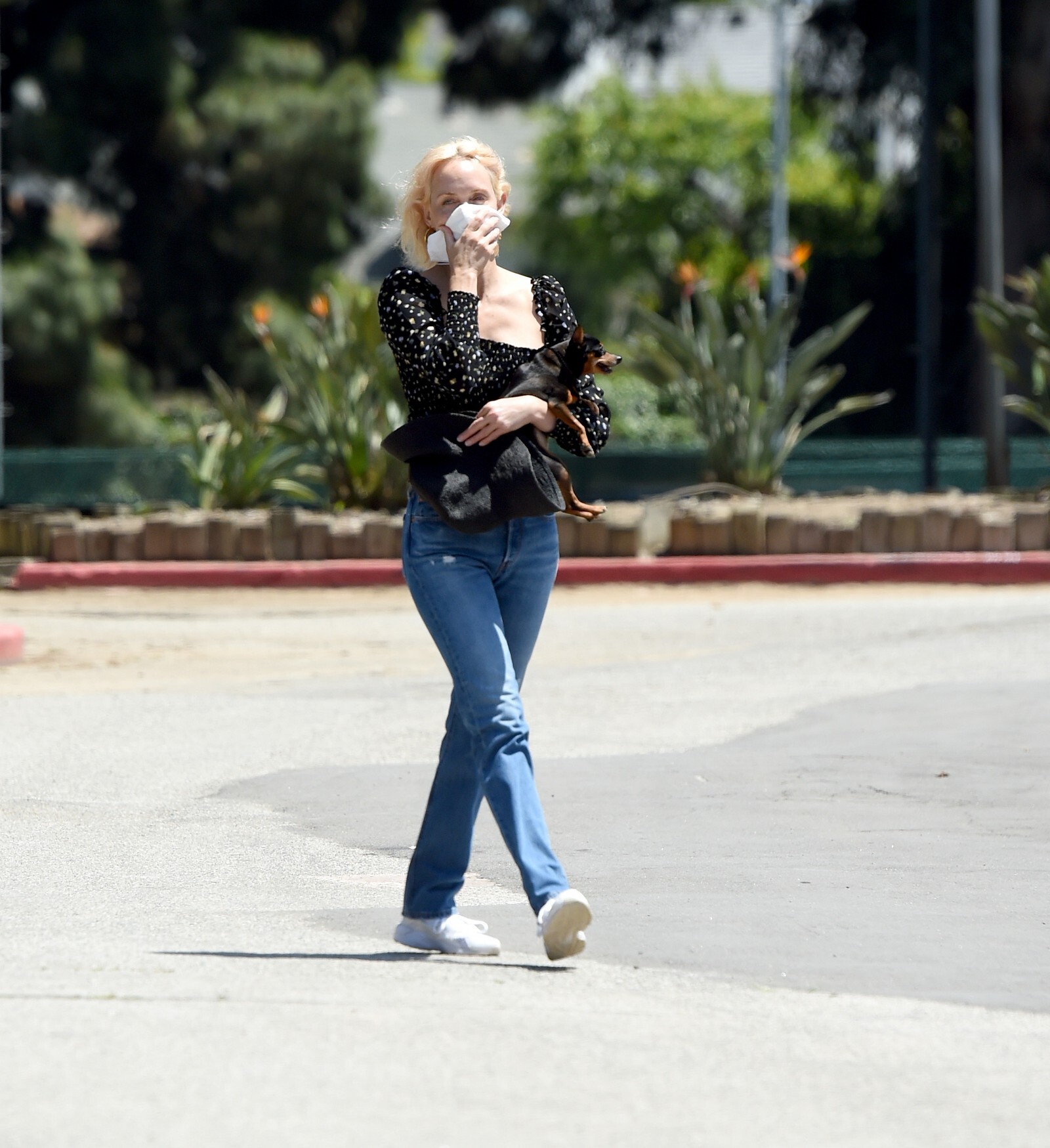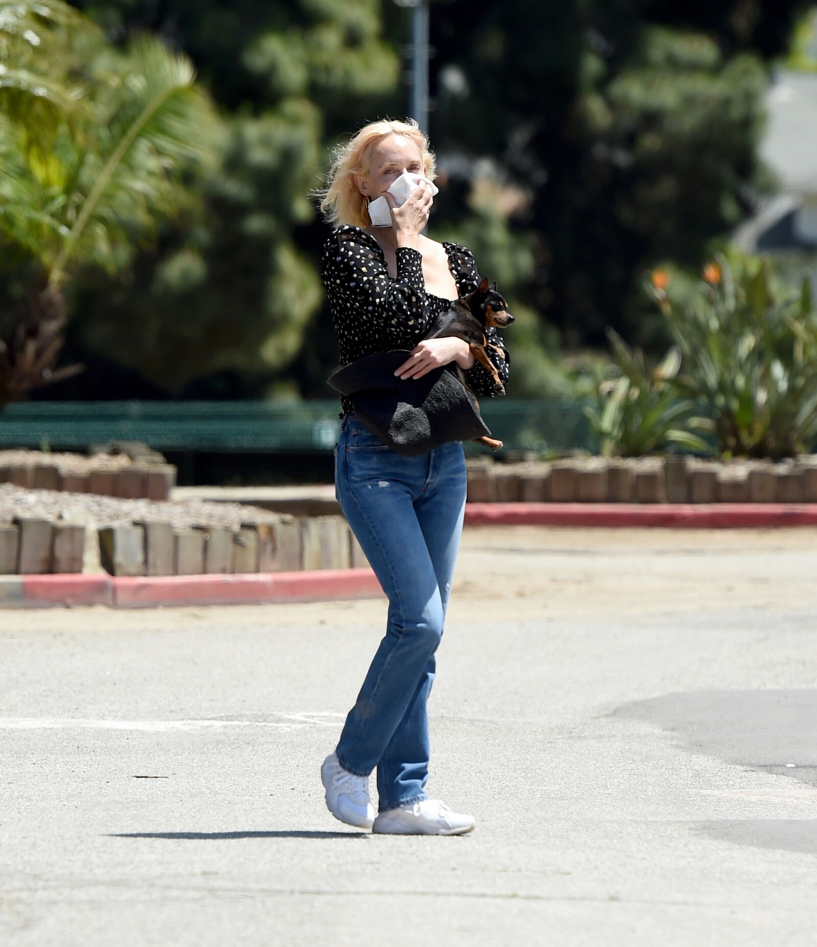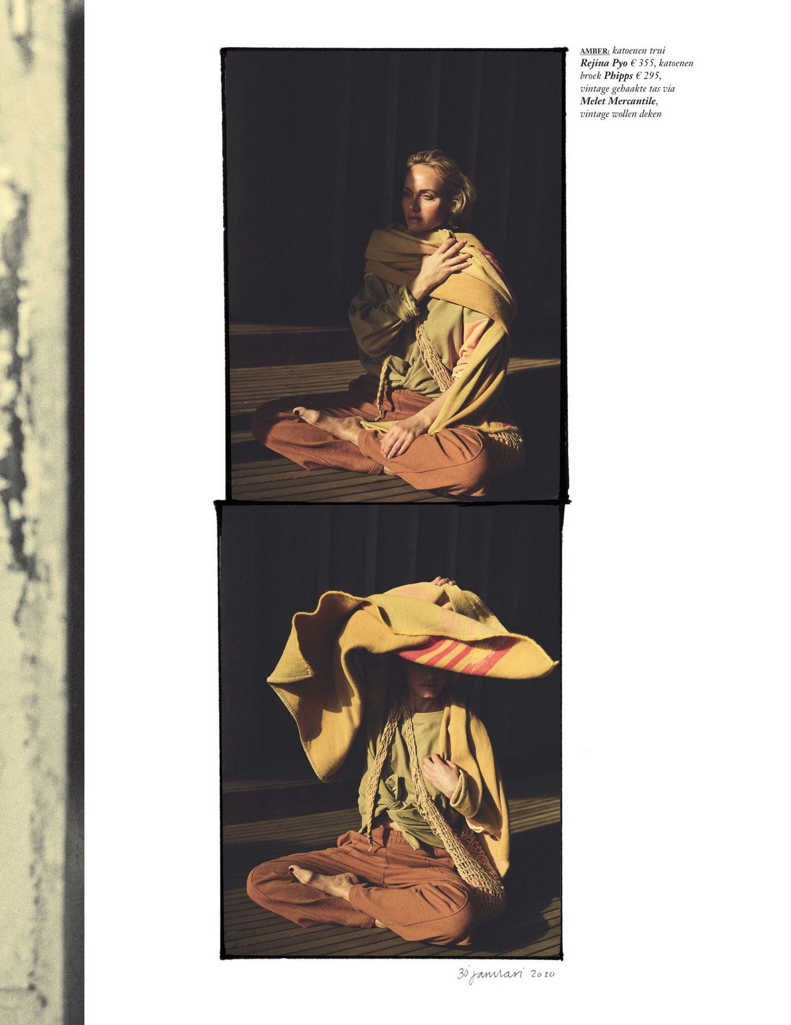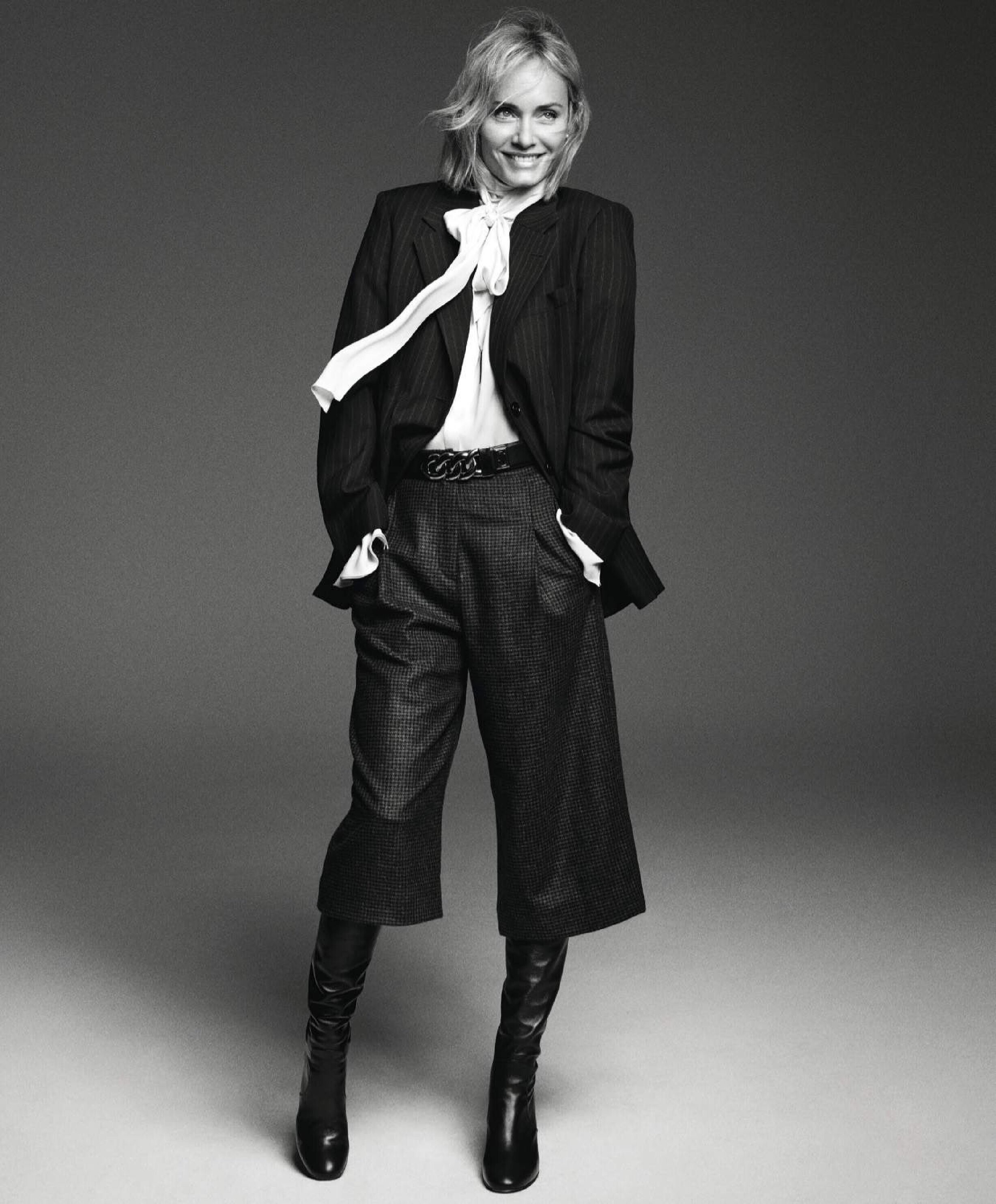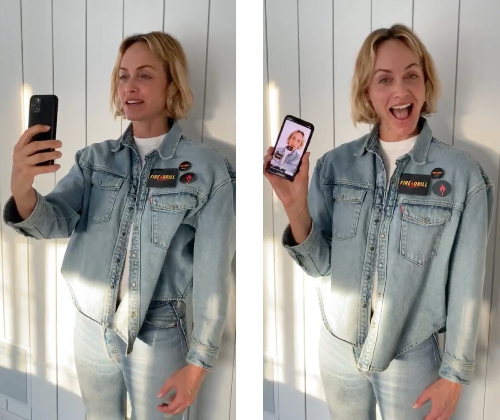 “Here, I’m filming a video for the first virtual rally for Fire Drill Fridays, the Greenpeace movement for climate change that Jane Fonda started. Every Friday, we had been rallying and protesting in person, but since COVID-19 [began], we can’t. I’m wearing the outfit that I wore to the last L.A. event: the jeans are vintage RE/DONE Levis, the T-shirt is Hanes x Karla, and the jacket is Levi’s. Now that we’re all virtually connected, I wanted to show a way of being active in the world—we still have voice, and we can still do good.”