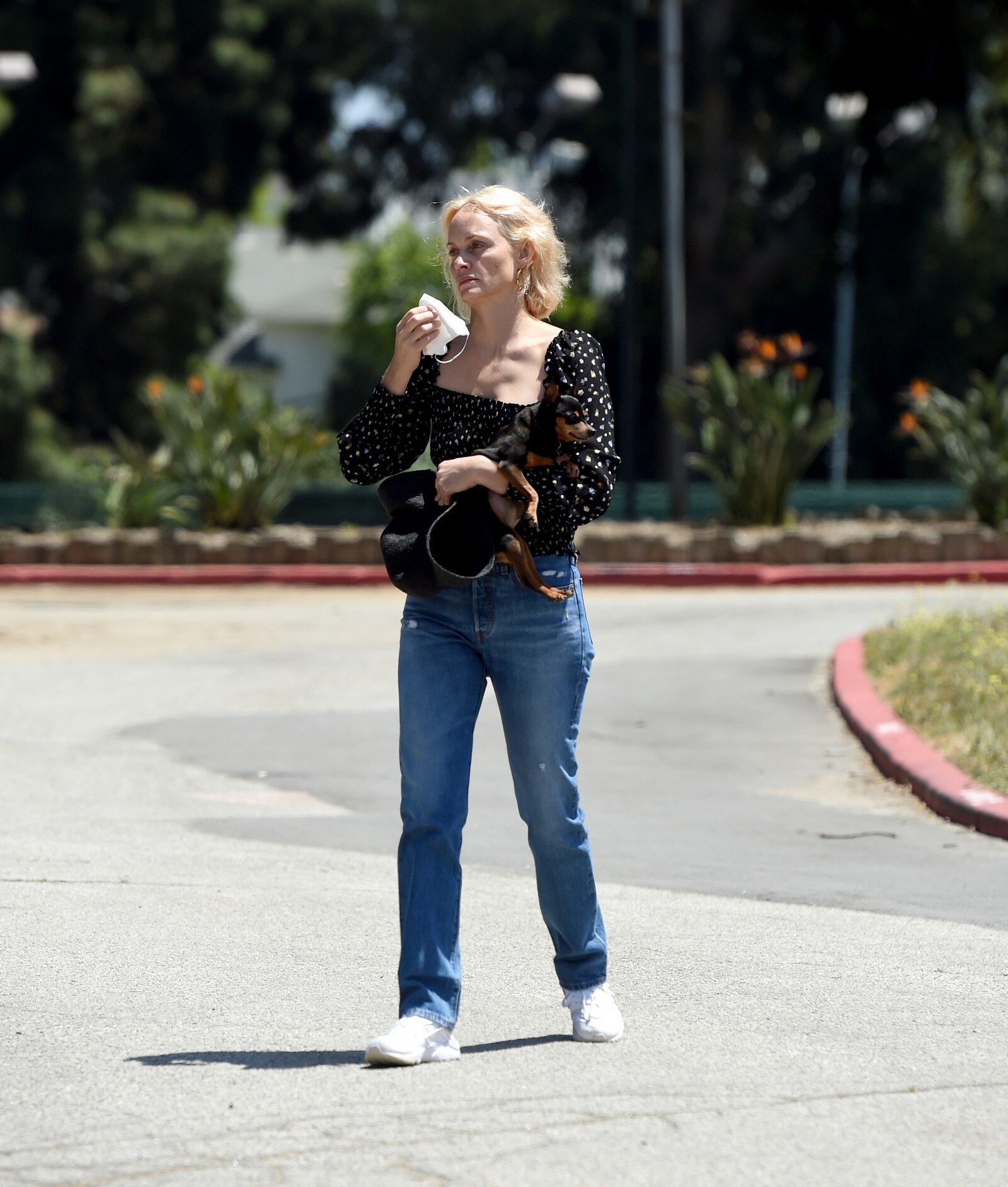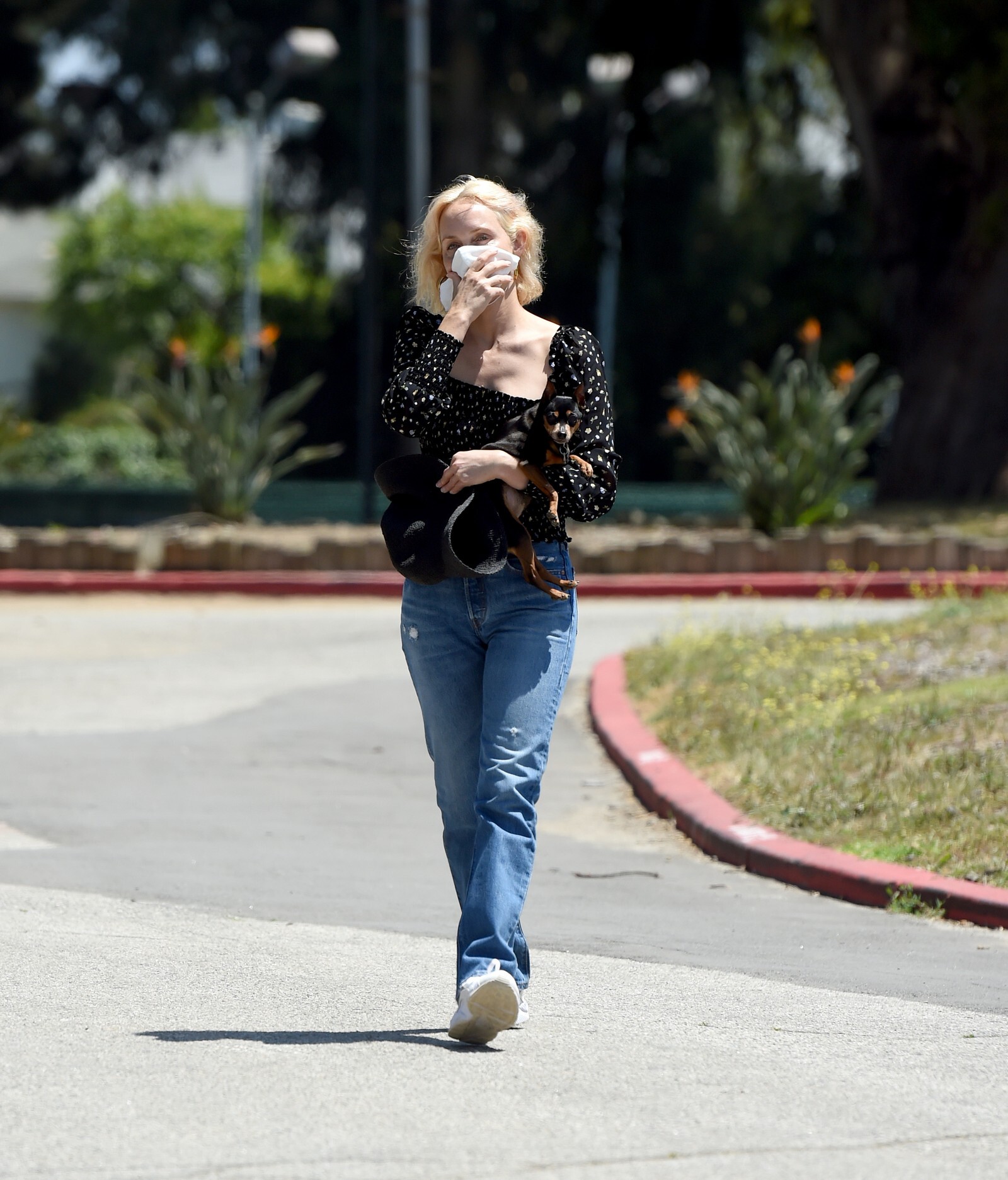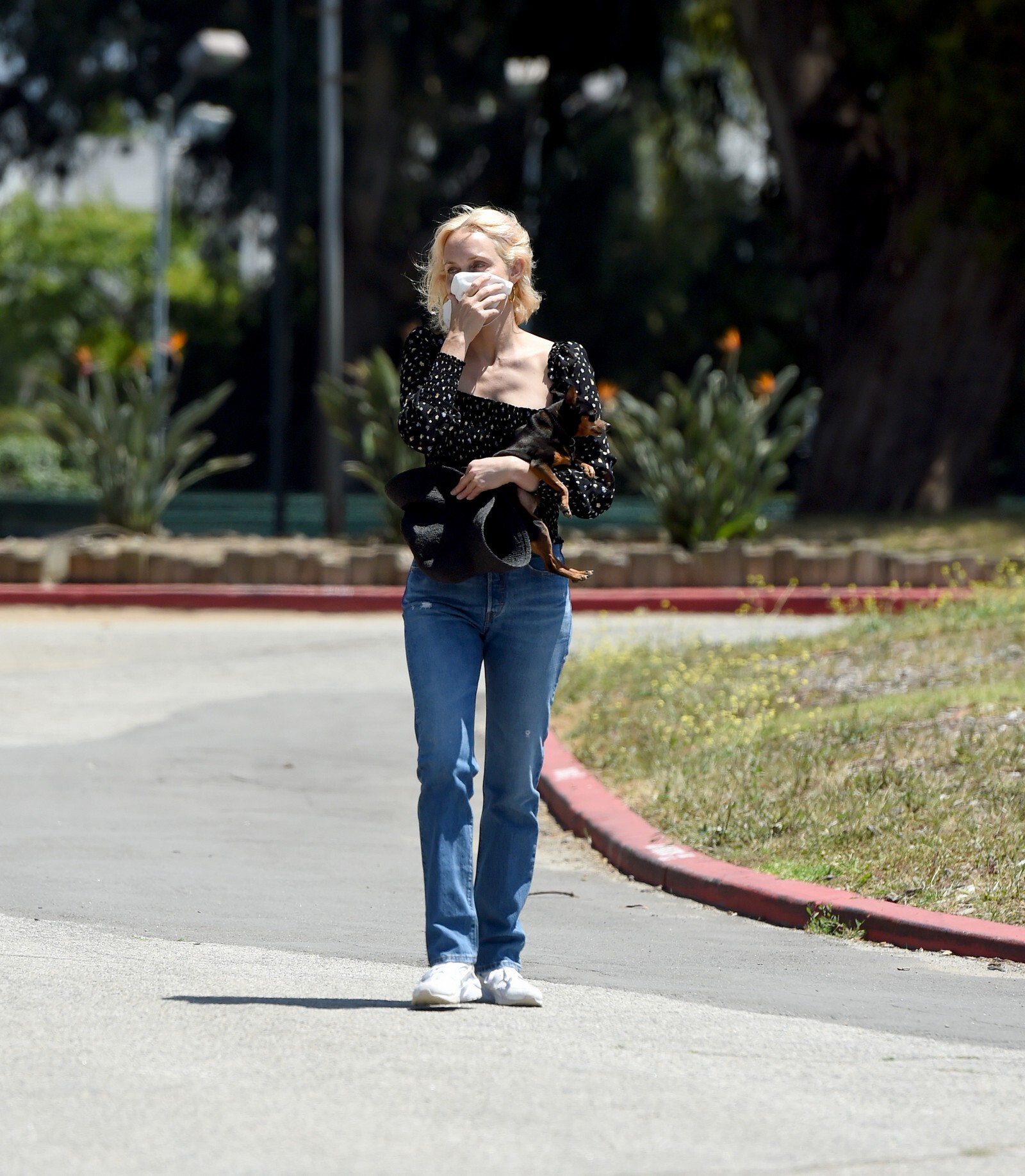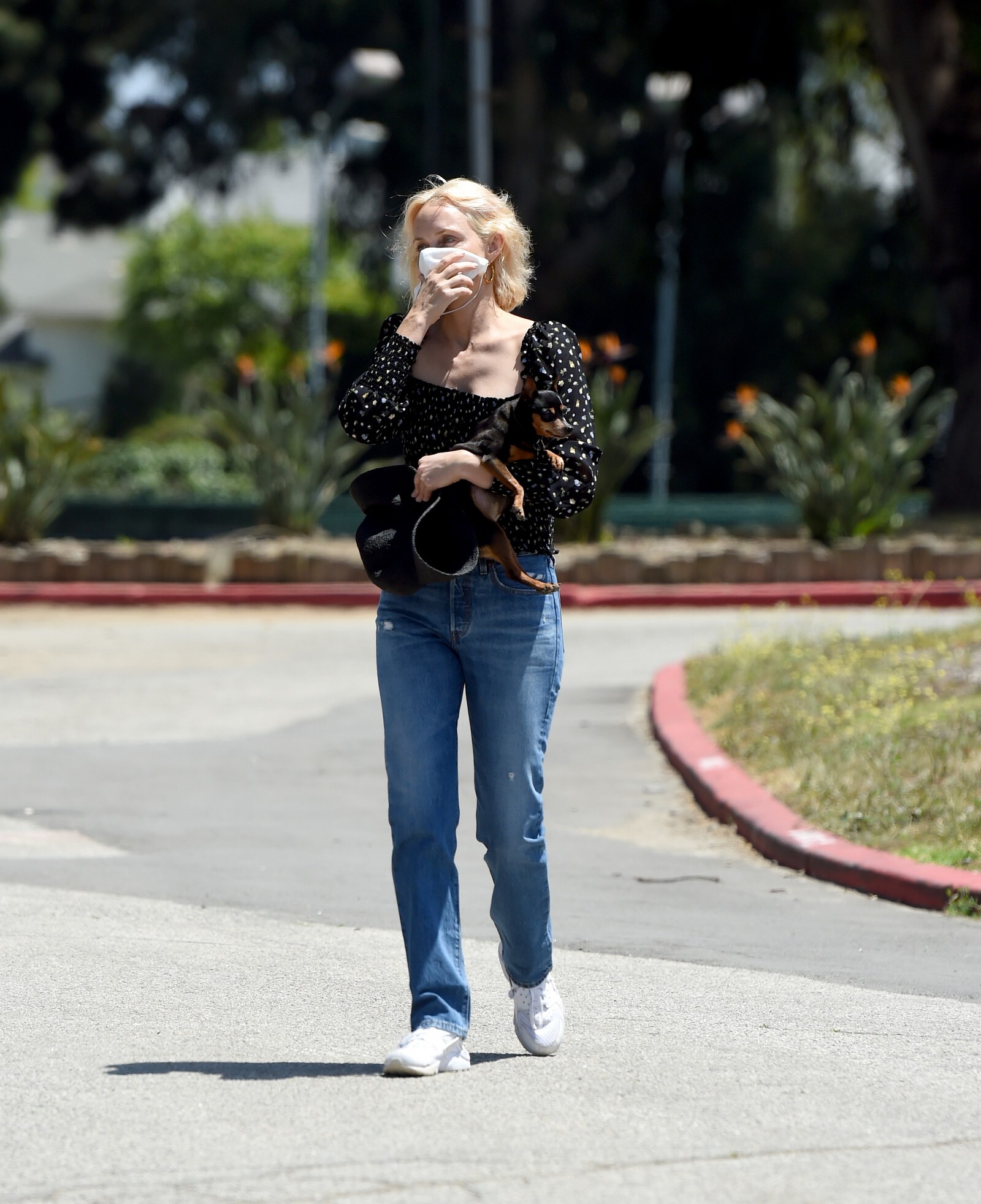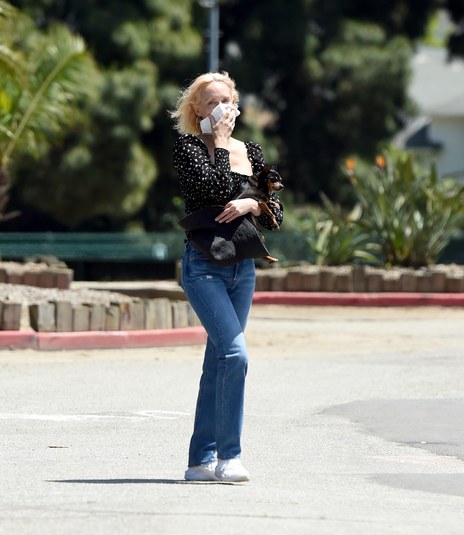 “Here, I’m filming a video for the first virtual rally for Fire Drill Fridays, the Greenpeace movement for climate change that Jane Fonda started. Every Friday, we had been rallying and protesting in person, but since COVID-19 [began], we can’t. I’m wearing the outfit that I wore to the last L.A. event: the jeans are vintage RE/DONE Levis, the T-shirt is Hanes x Karla, and the jacket is Levi’s. Now that we’re all virtually connected, I wanted to show a way of being active in the world—we still have voice, and we can still do good.”