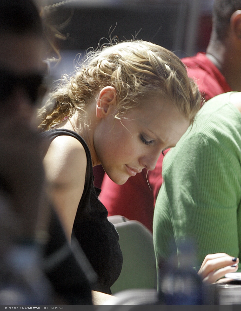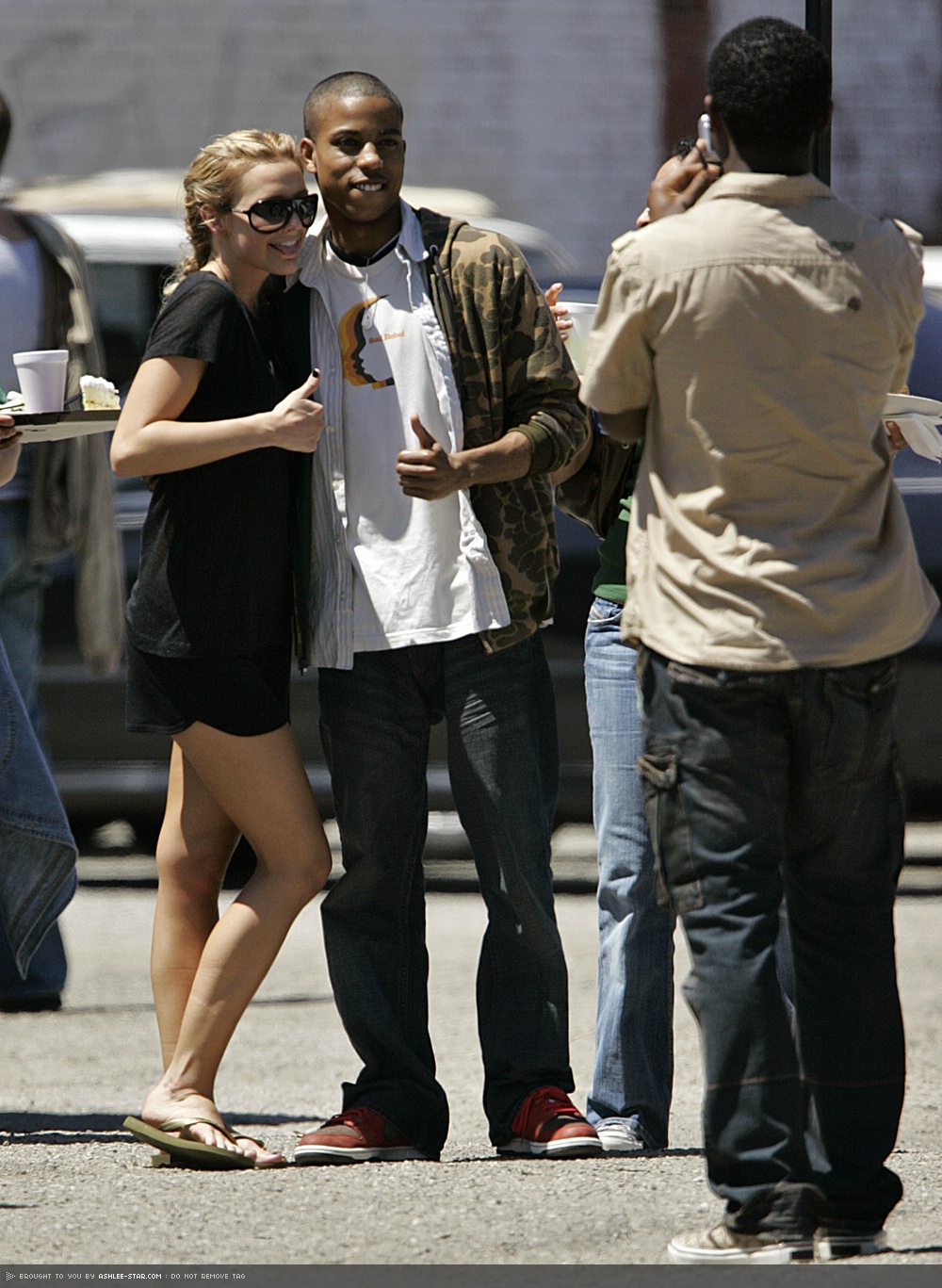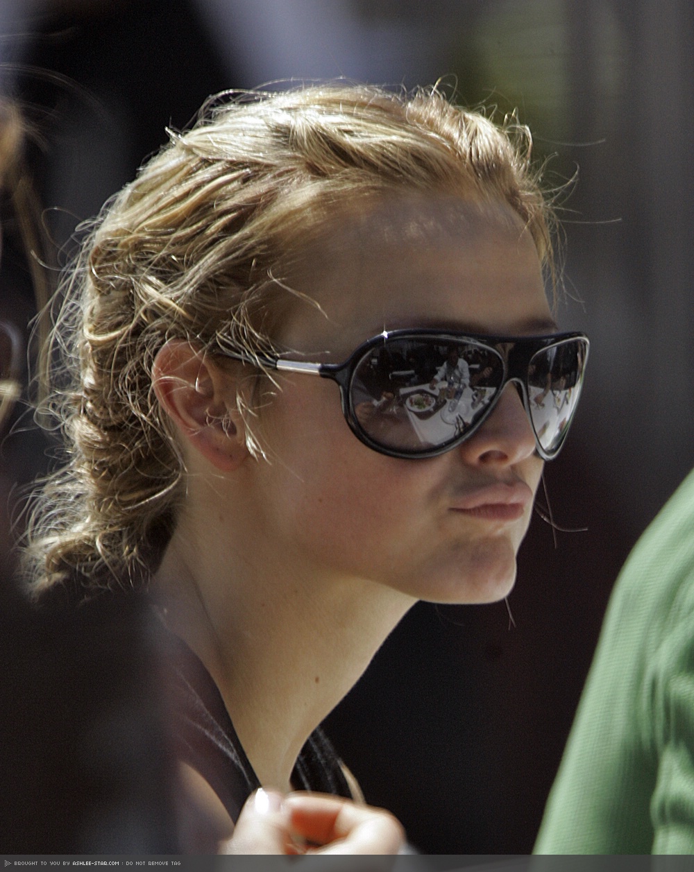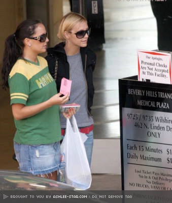 lol, that's silly! you can't tell anything because her nose is covered by shades in the second pic.