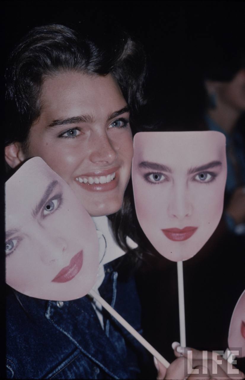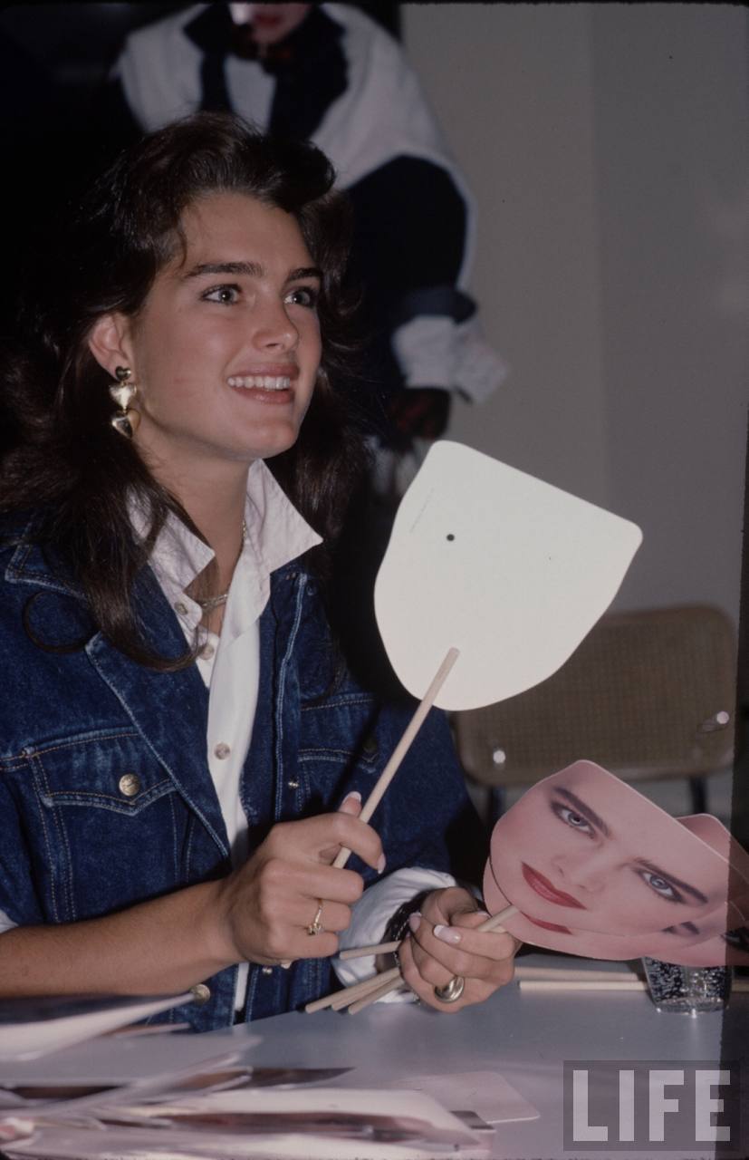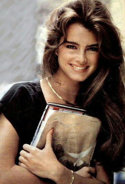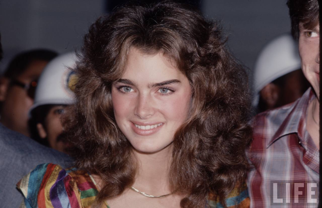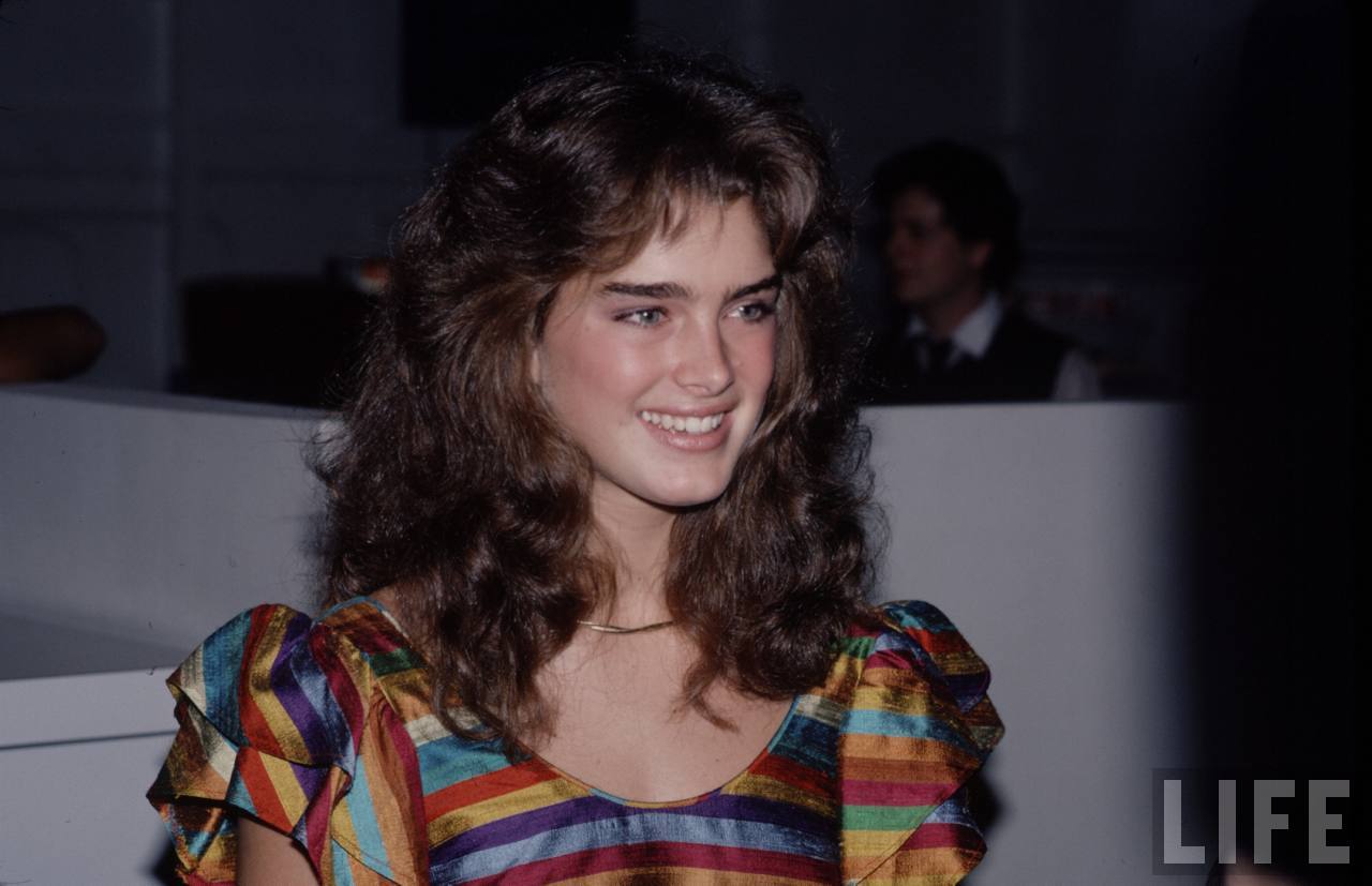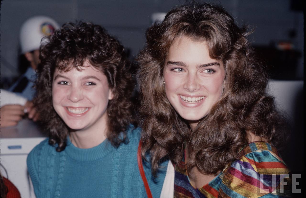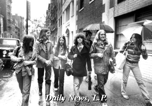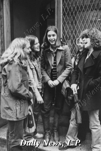 Caption: Brooke Shields (2nd from left) with friends (classmates) after school in New York City on their way for a pizza.