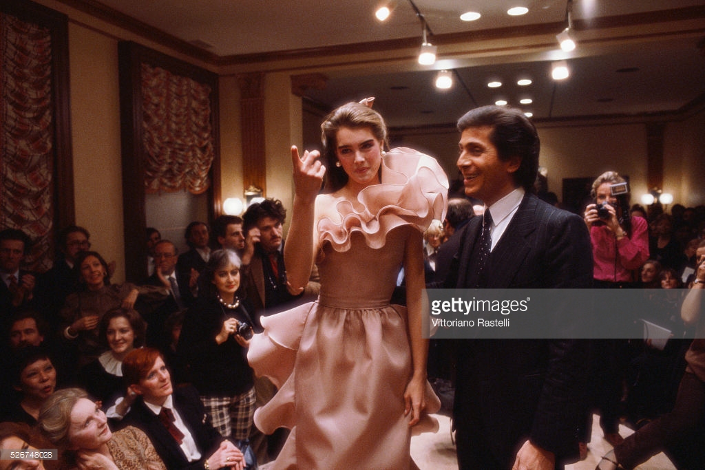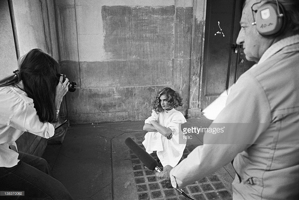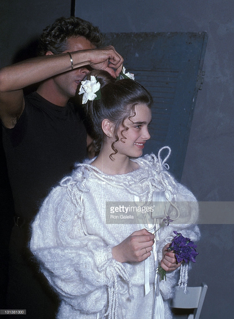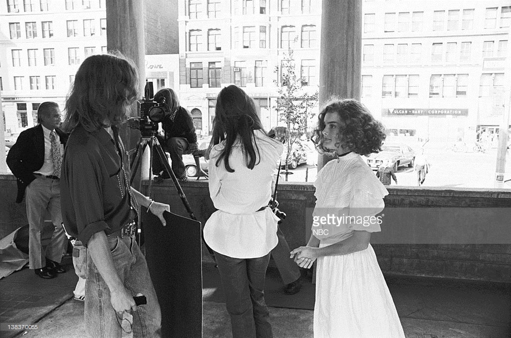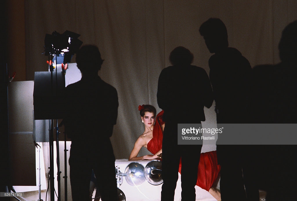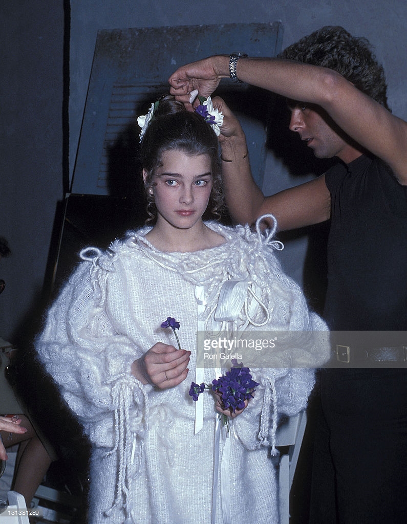 Louis Malle directs Brooke Shields and Keith Carradine in Pretty Baby. Shields made her movie debut at age 11 in this story of a child prostitute, Malle's first film made in America. New Orleans, 1977.