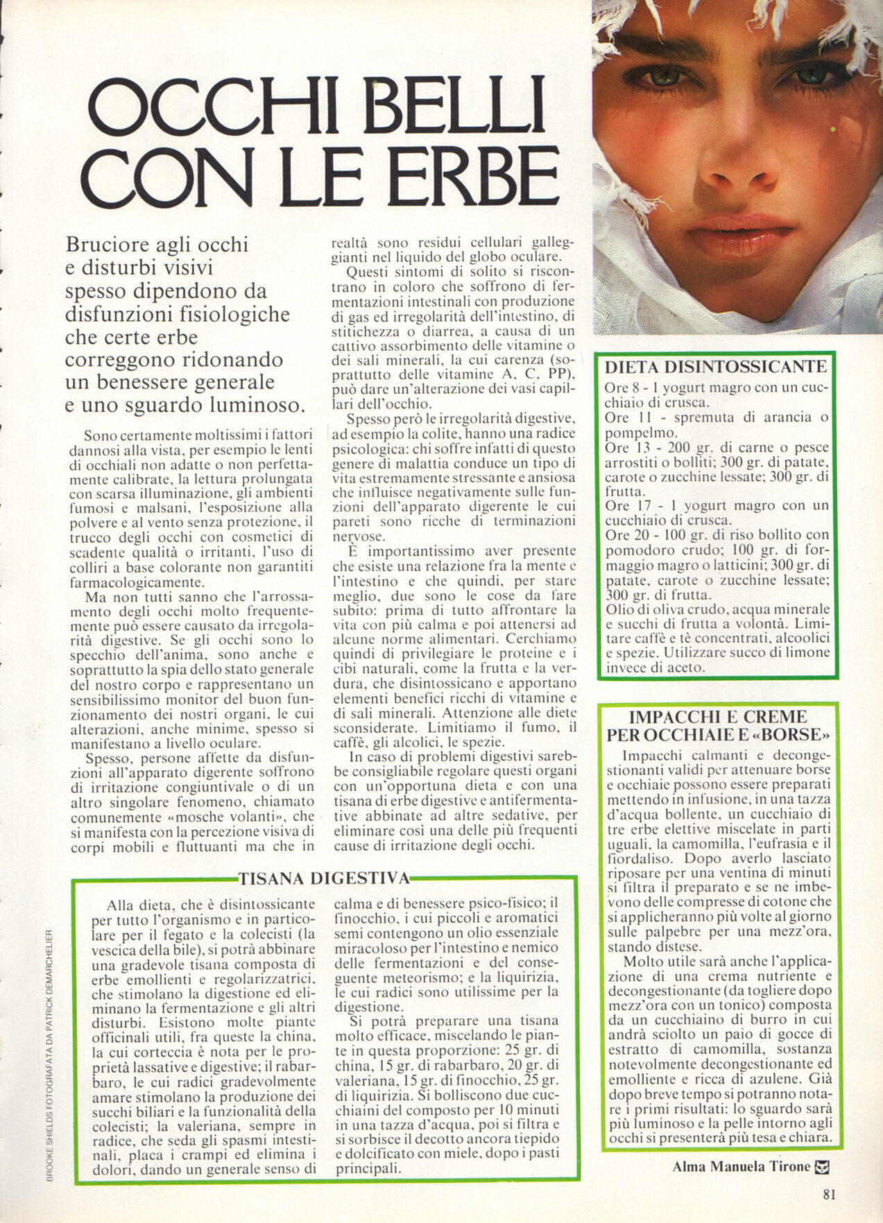 "OCCHI BELLI CON LE ERBE" - COSMOPOLITAN Italy June 1983 by Patrick Demarchelier