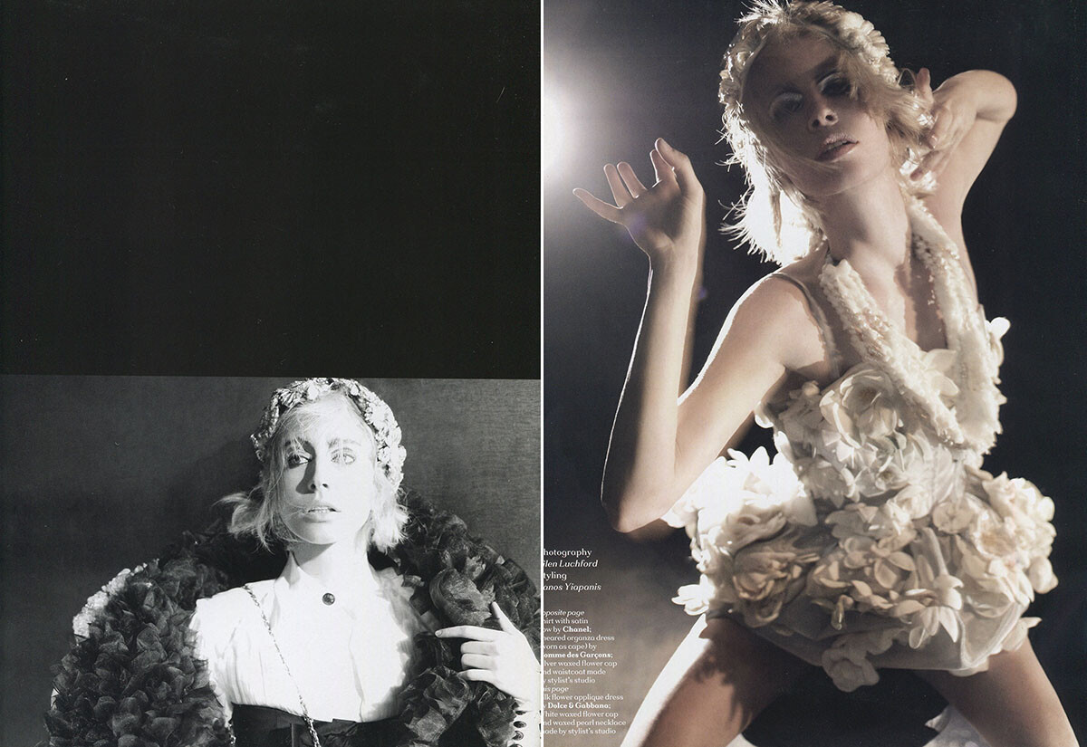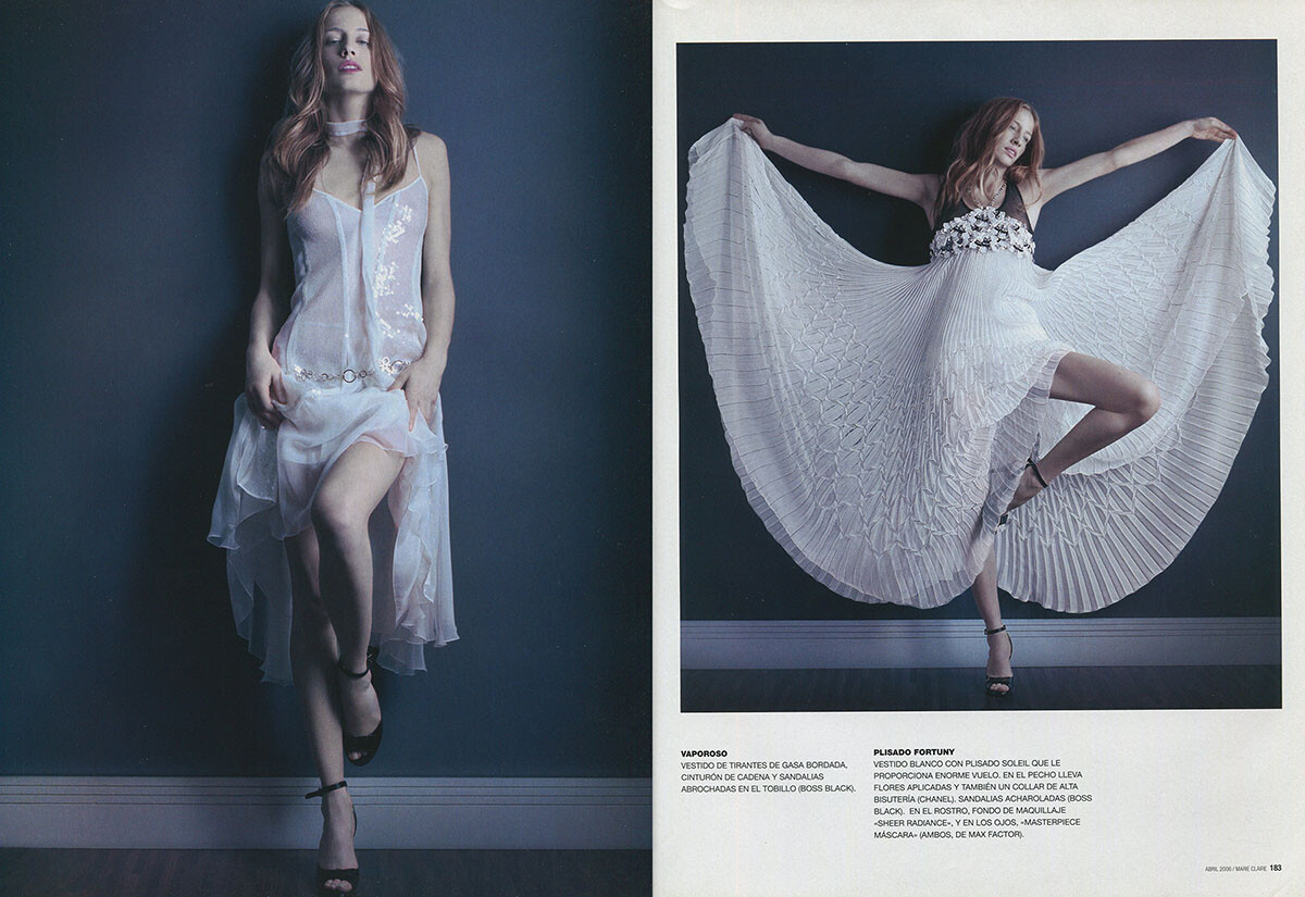 What ? Sorry but she appears at 5'35s in a white dress.