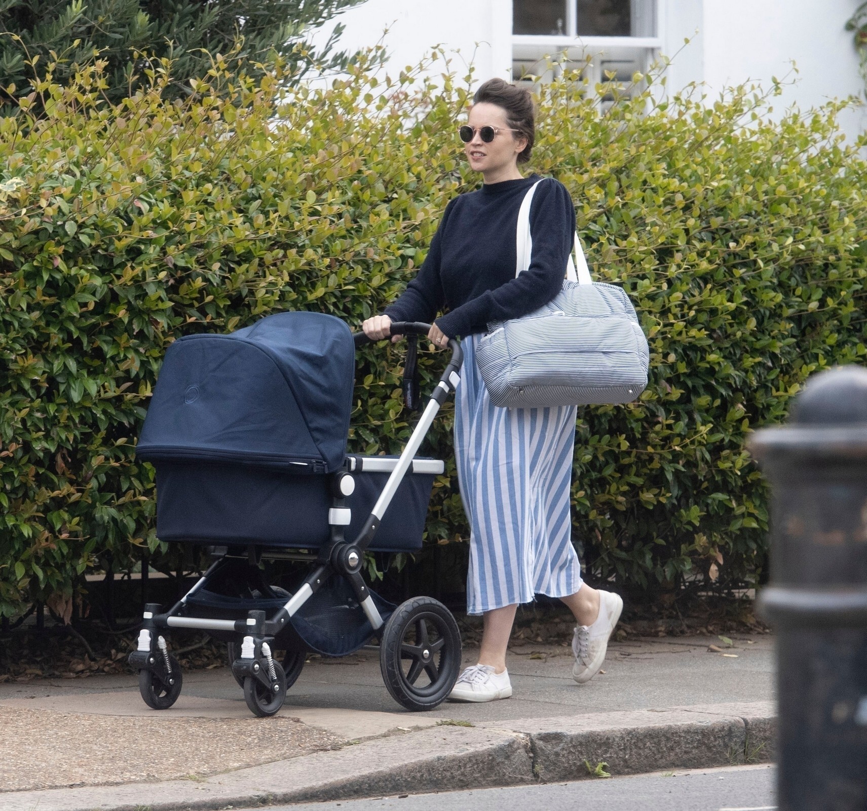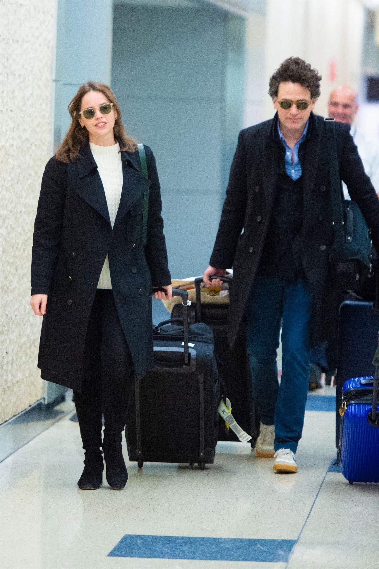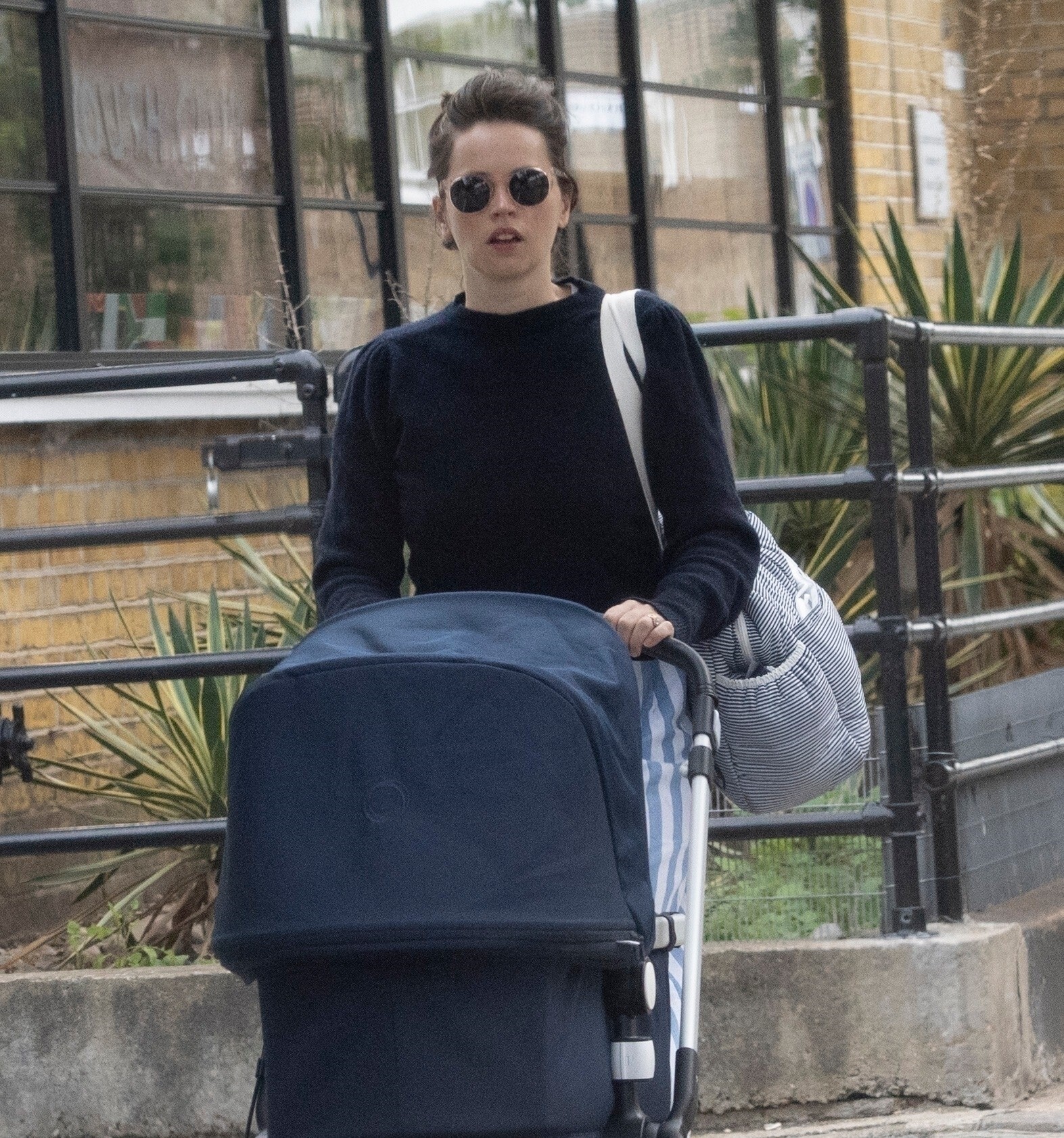 Felicity Jones has been seen for the first time since announcing that she is pregnant, as she arrived in London on Thursday.