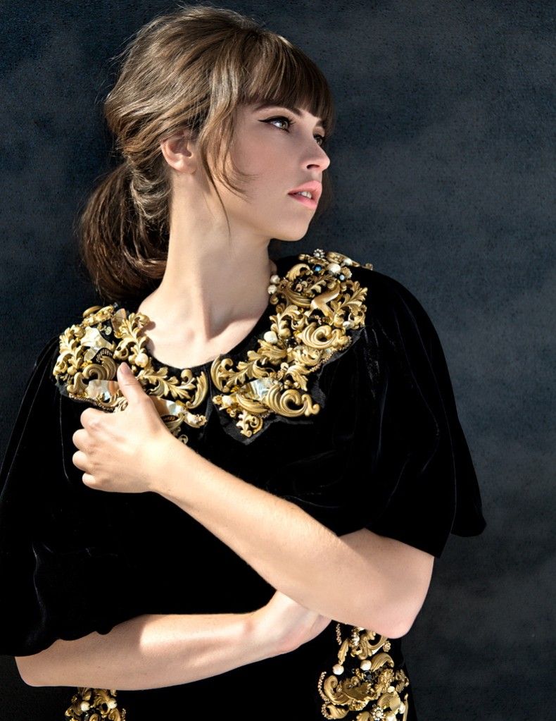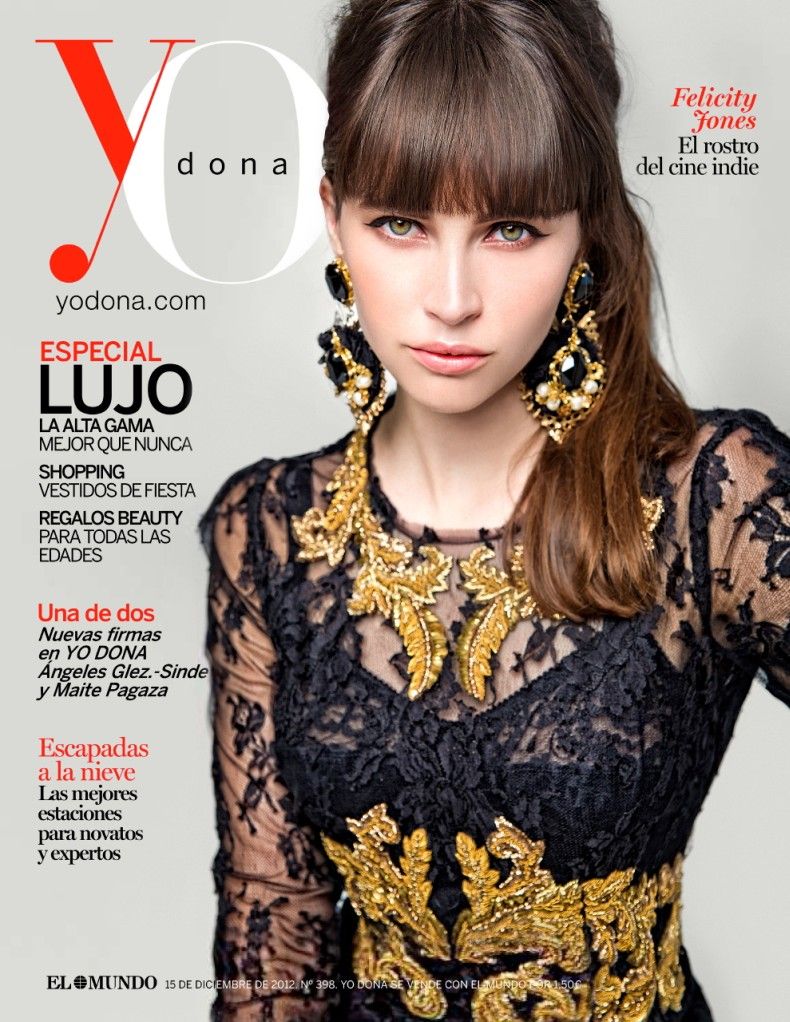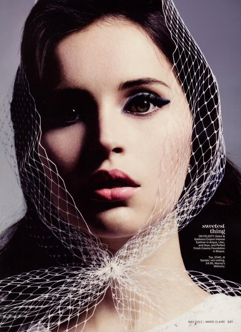 La Dolce Vita – British actress Felicity Jones models all Dolce & Gabbana in Marcus Ohlsson’s (WM Artist Management) stunning portraits shot for the May issue of Marie Claire US. Styled by Laura Ferrera, the brunette stunner dons pale looks with makeup by Pat McGrath and tousled tresses by hair stylist Neil Moodie. / Manicure by Jin Soon, Beauty editor – Ying Chu
