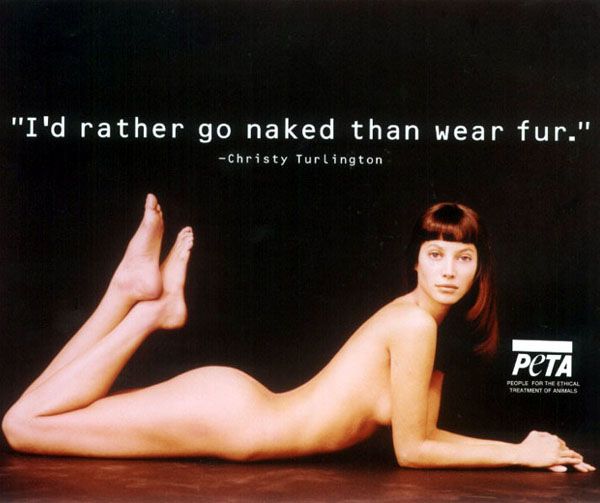 Christy Turlington on display at Peta's Unveiling of new sexy adverts at the New York Museum of Sex. The museum also spotlighted Peta's most iconic naked ads of other celebrities in a retrospective. September 22, 2004.