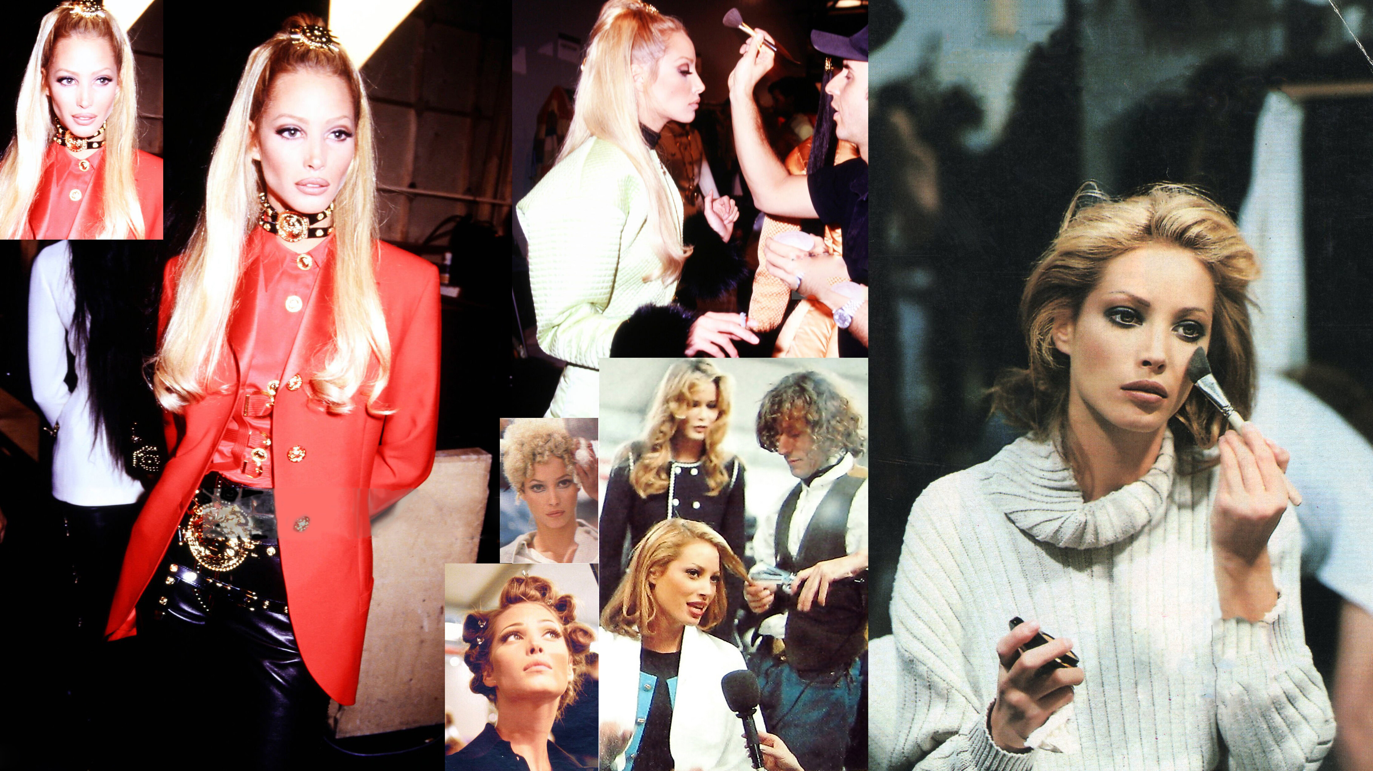 Christy Turlington for Gianni Versace, ready-to-wear, fall/winter 1993, also showing Carla Bruni, Helena Christensen + group picture