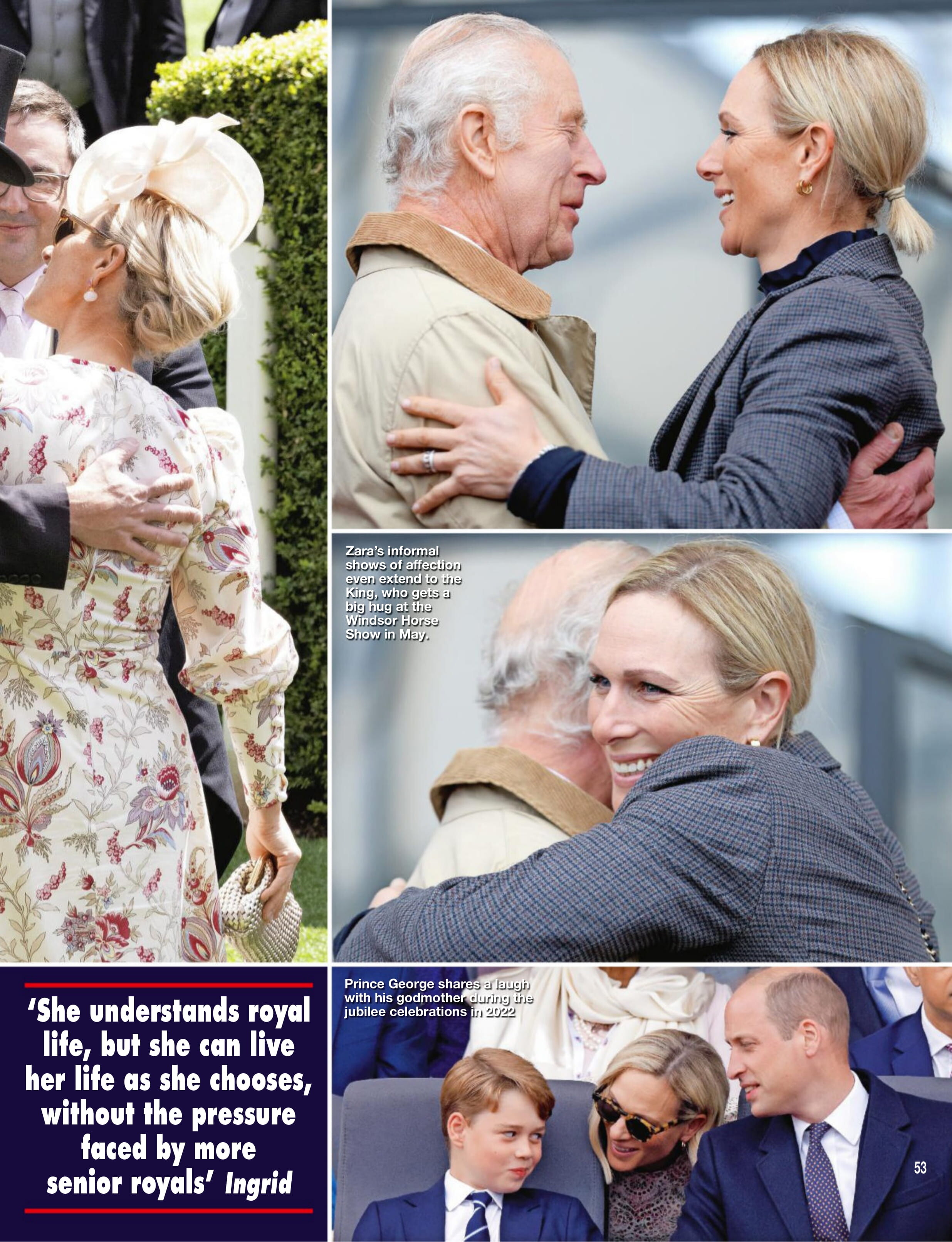She frequently attends various events for charity and has taken to supporting certain causes herself, mainly for spinal injuries, equestrian charities and children's causes.