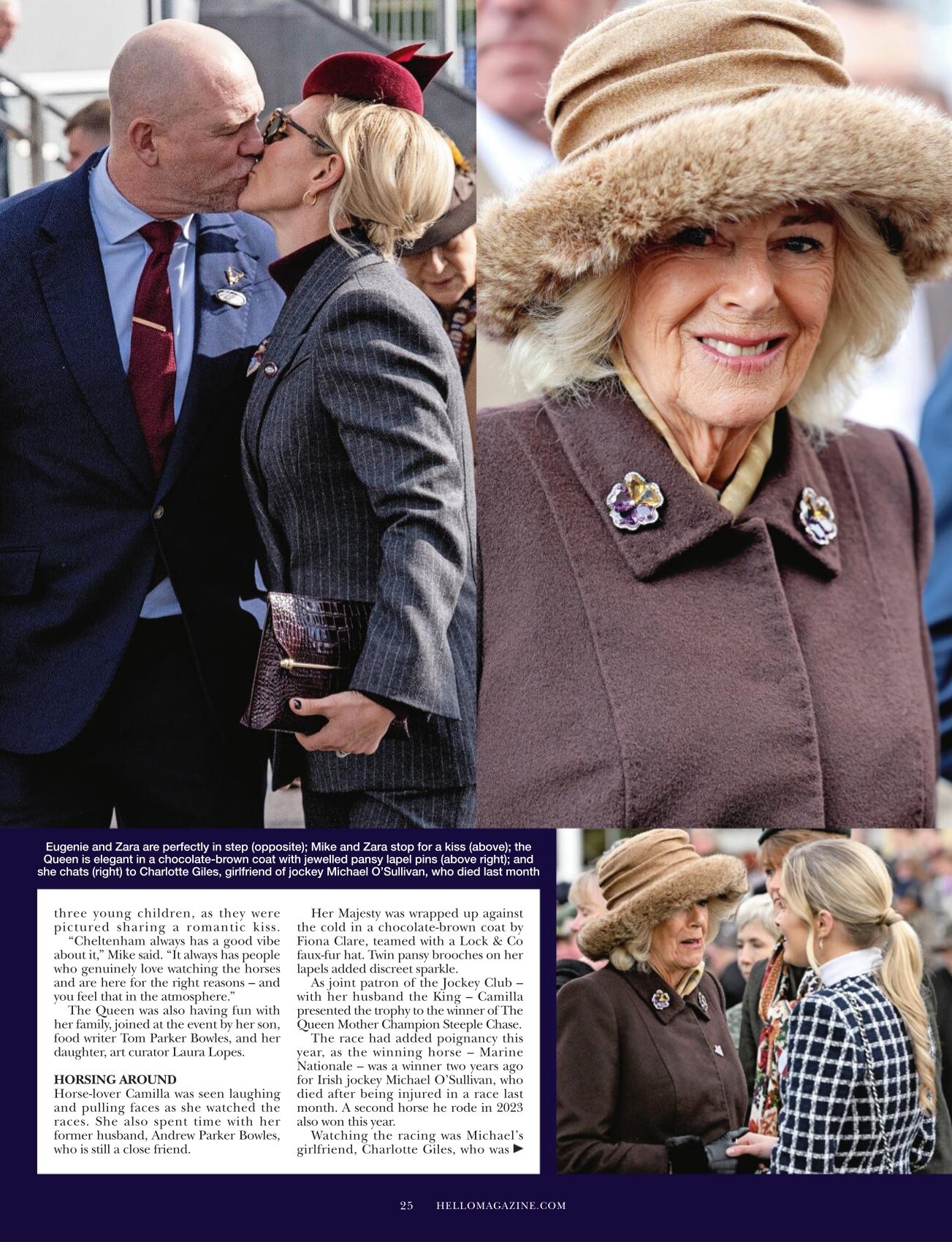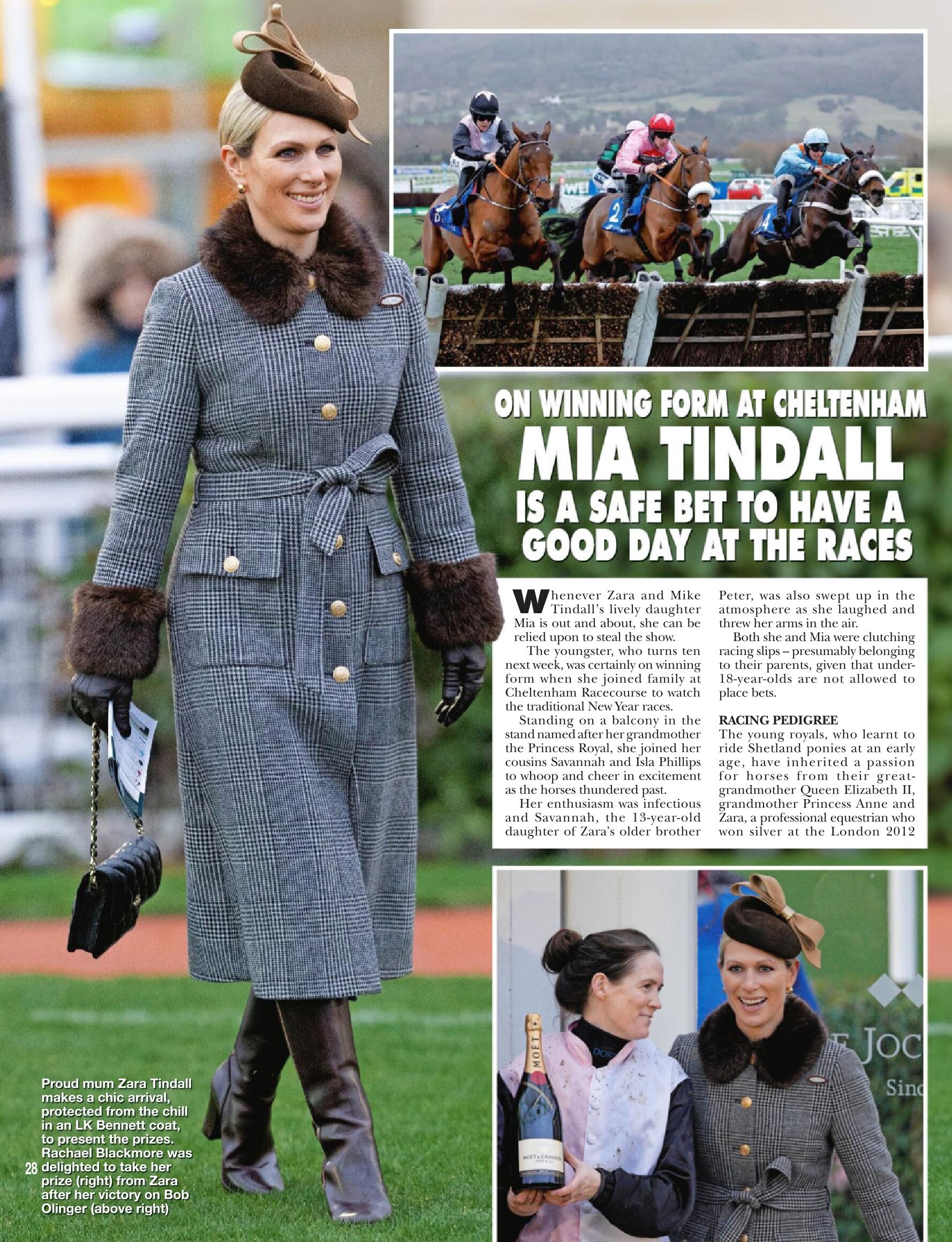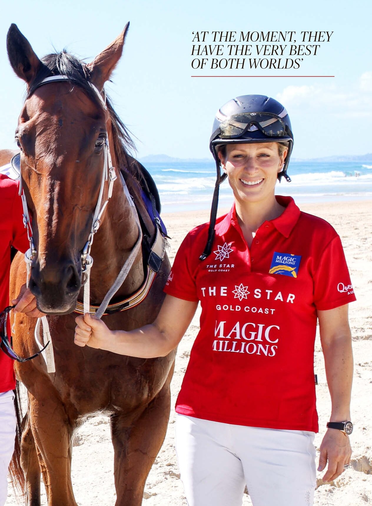 On 25 October 2008, She fell from her horse, Tsunami II, at the 15th fence of a cross-country event at Pau, France, and broke her right collarbone. The horse had broken its neck after it had tipped over the hedge and so had to be put down.