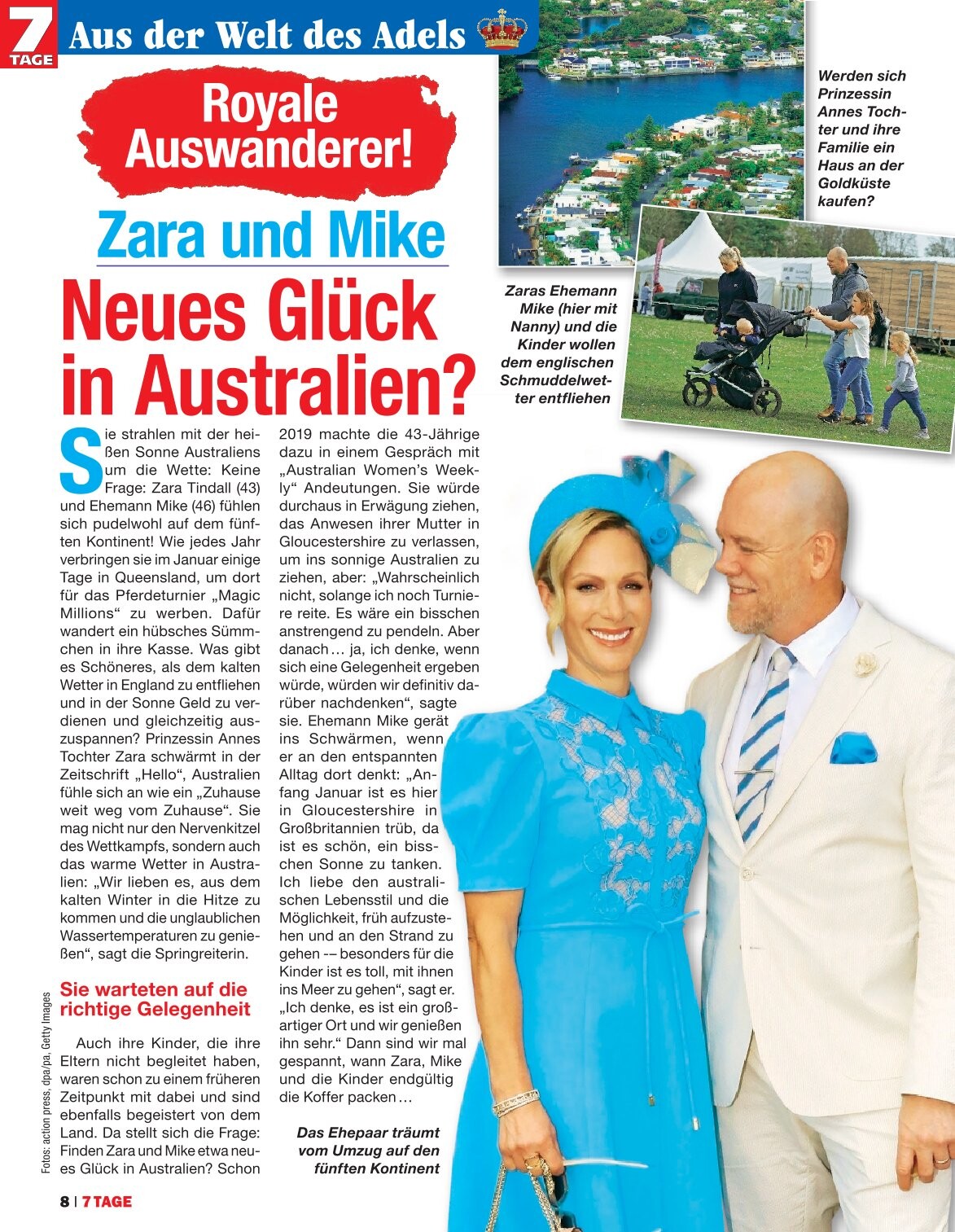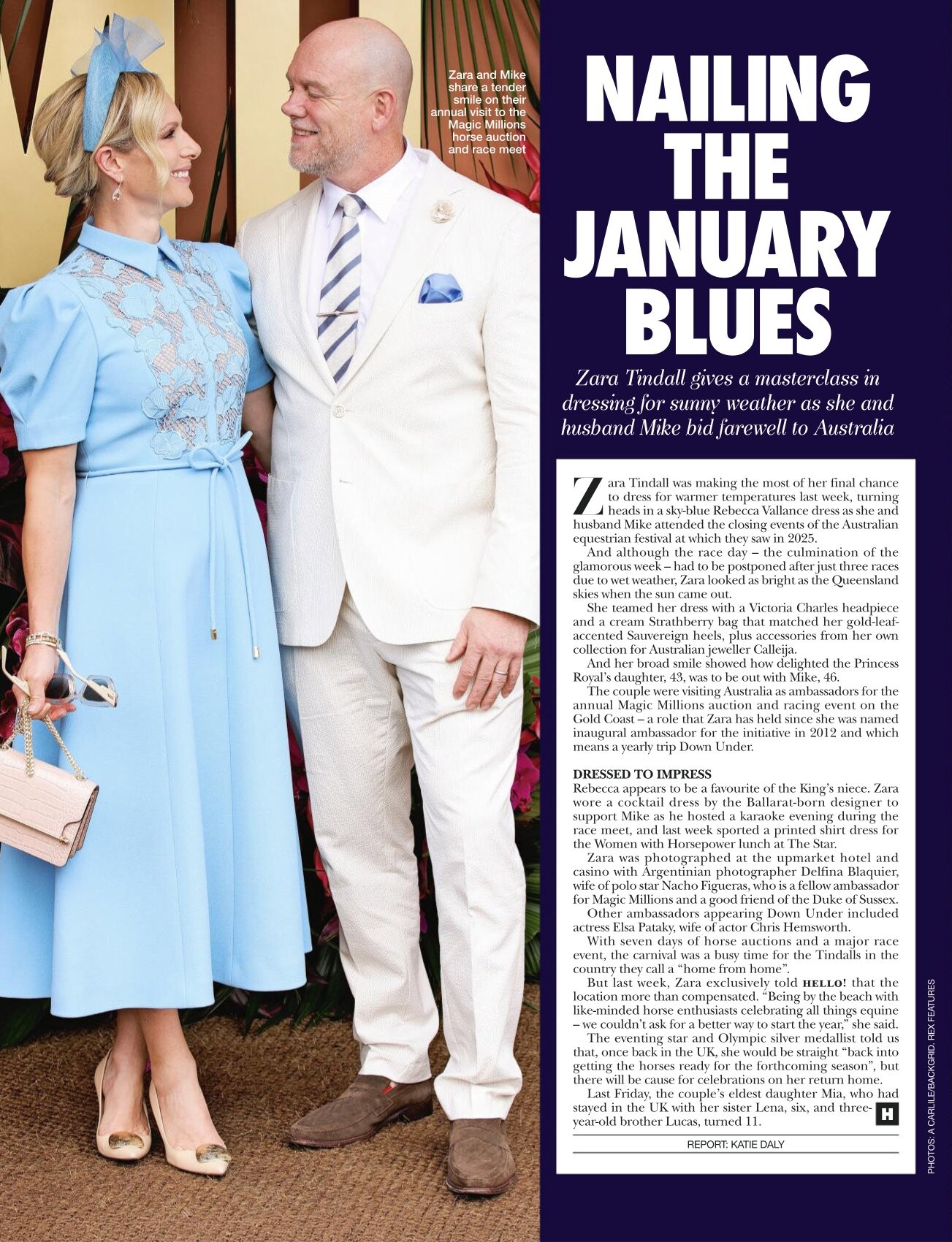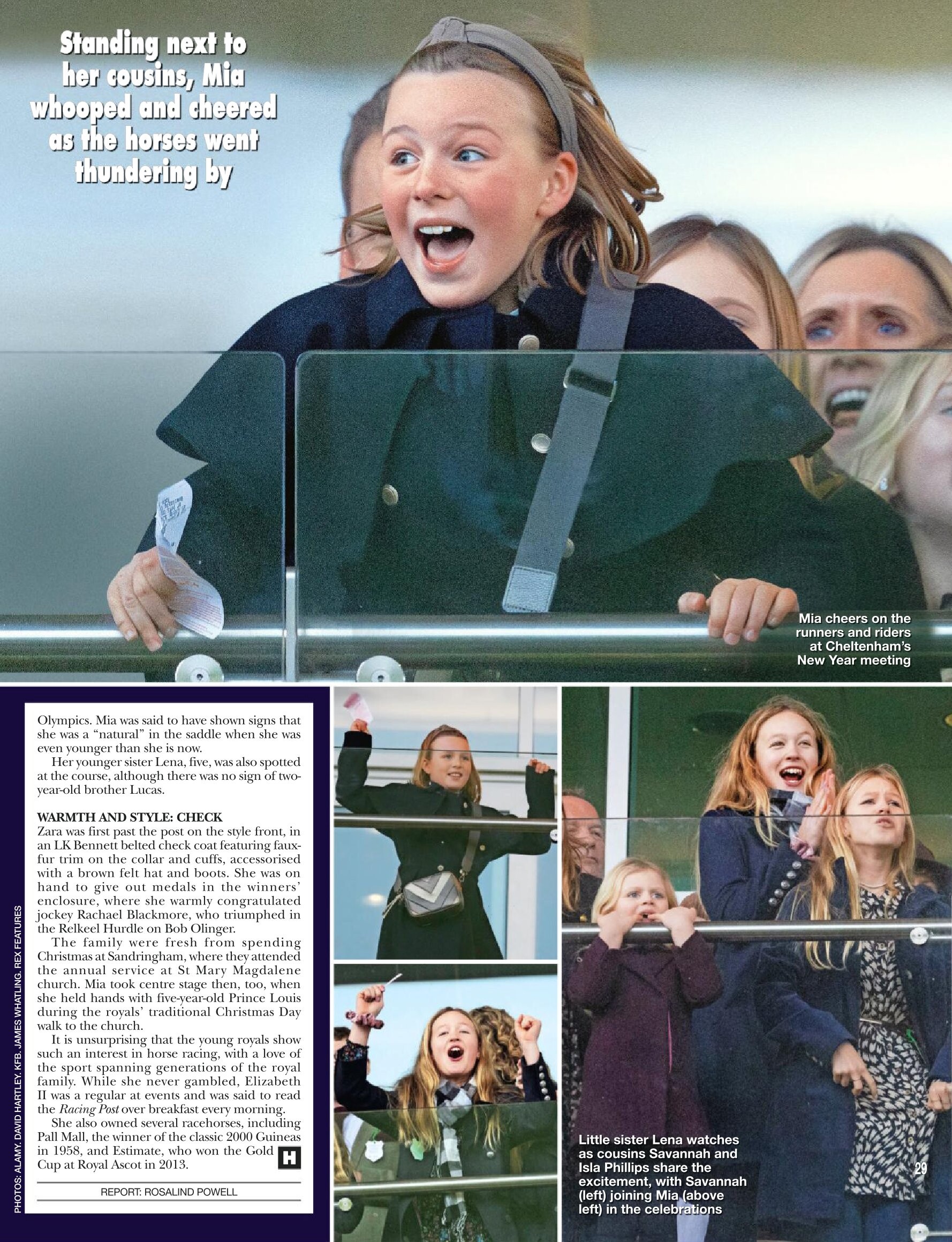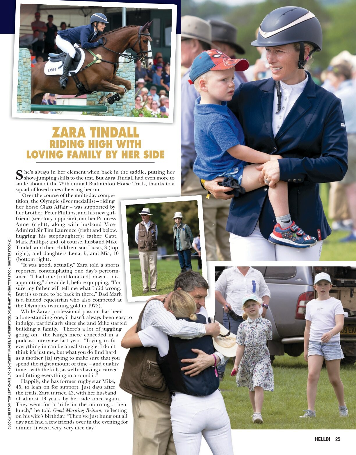 On 25 October 2008, She fell from her horse, Tsunami II, at the 15th fence of a cross-country event at Pau, France, and broke her right collarbone. The horse had broken its neck after it had tipped over the hedge and so had to be put down.