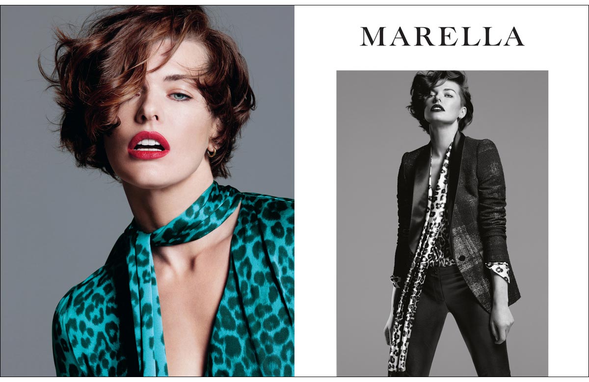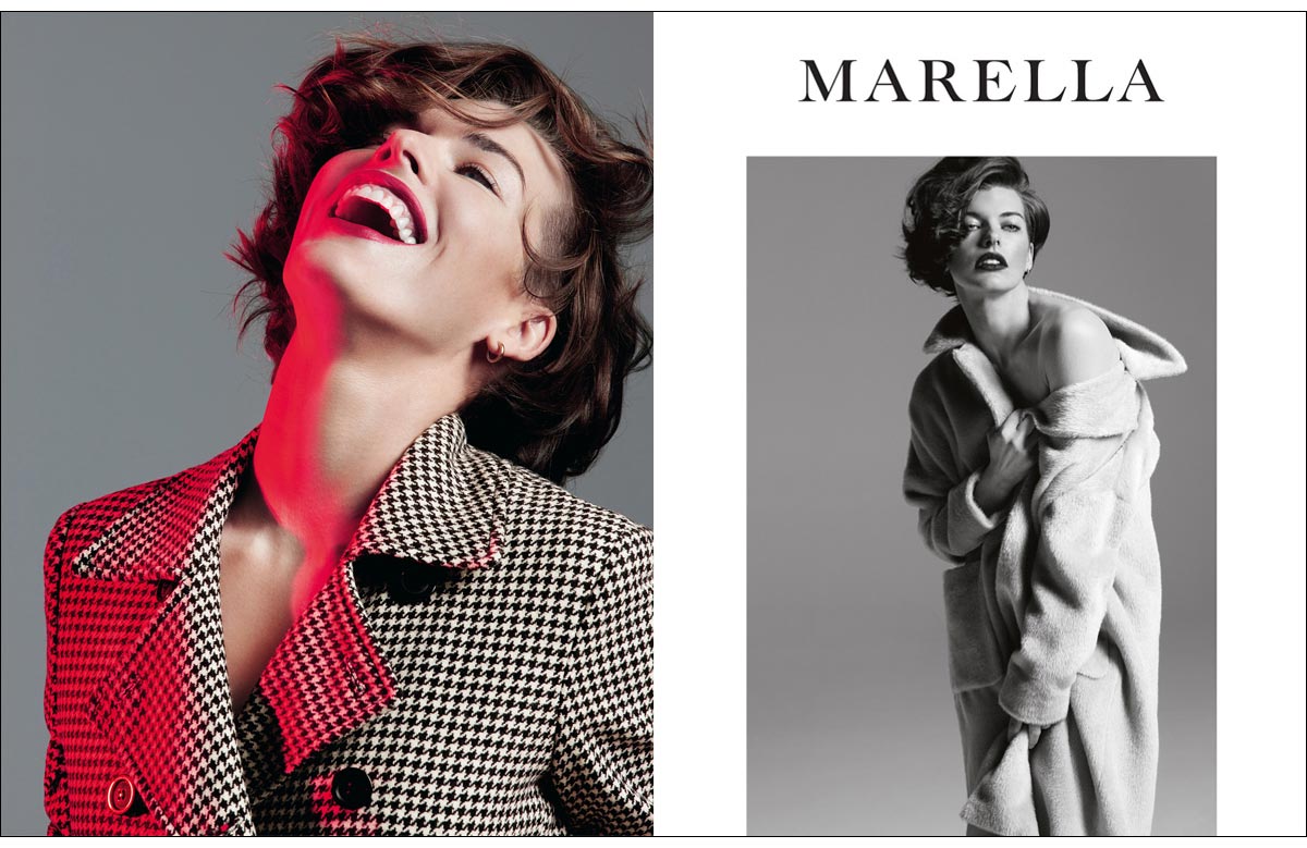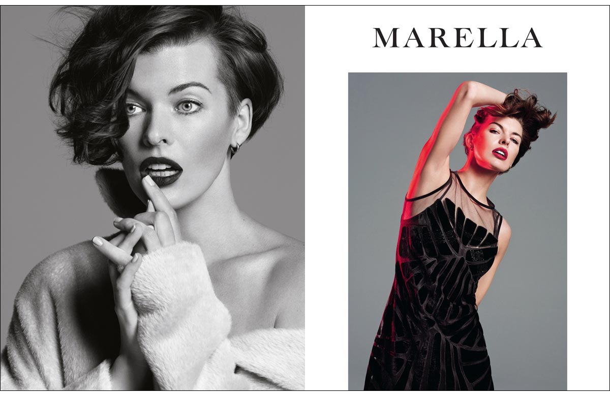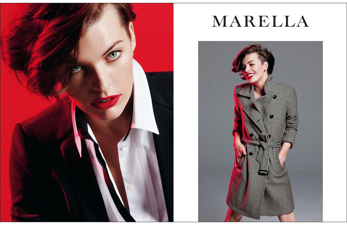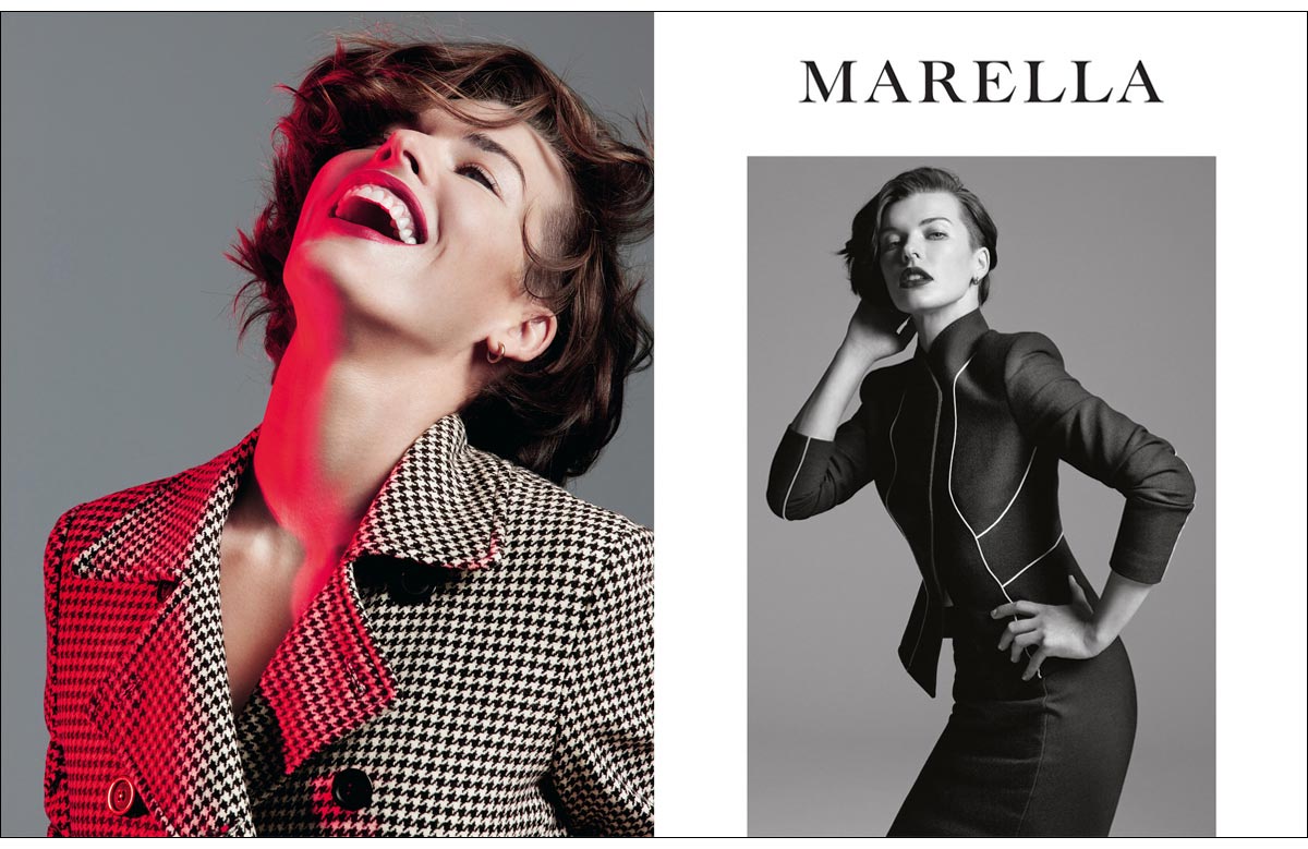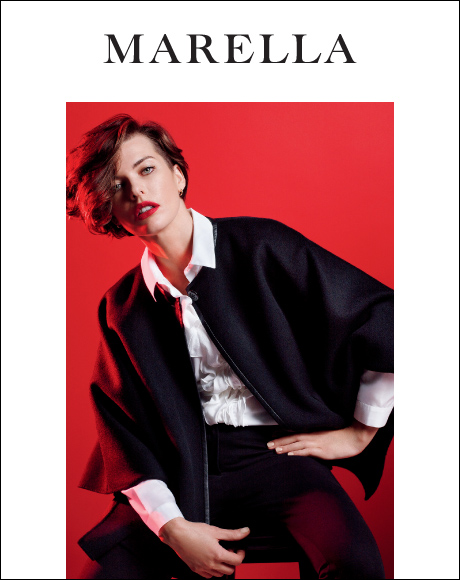 MILLA IS VERY SPECIAL AND BEAUTIFUL. HER INTENSE GAZE SEDUCES, HER VERVE ENCHANTS, HER SMILE DISPLACES. WHO WOULD NOT WANT TO LOOK LIKE HER? THAT IS WHAT MARELLA TEAM THOUGHT WHEN THEY FIRST MET HER IN NEW YORK ON THE SET OF THE ADVERTISING CAMPAIGN FOR SPRING- SUMMER 2012. SHE ARRIVED IN THE STUDIO AND CONNECTED WITH EVERYONE THROUGH HER CHARM AND SIMPLICITY. HAIR AND MAKE-UP ON, CLICK AND... WOW! PERFECT PICTURES. WHO IS REALLY MILLA JOVOVICH? SHE TOLD US ABOUT HERSELF, OF HOW SHE MANAGES WORK AND PRIVATE LIFE WITH DETERMINATION AND AUTONOMY. SHE IS A WOMAN OF TODAY, WHO FLIES AROUND THE GLOBE FOR WORK, BUT ALSO GOES TO SCHOOL TO PICK UP HER DAUGHTER AND TAKES HER TO DANCE SCHOOL. THAT IS WHY SHE LIKES MARELLA: PRACTICAL BUT STYLISH, COMFORTABLE YET REFINED. FOR AUTUMN-WINTER SHE WANTED TO GIVE MORE, AND COLLABORATED ON A CAPSULE COLLECTION THAT IS INSPIRED BY HER LOOK AND THAT, WITH THE CREATIVE TEAM OF MARELLA, SHE DEVELOPED IN EVERY DETAIL.
