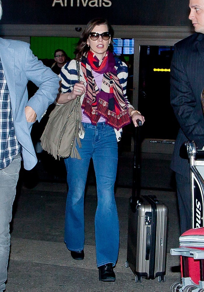 Mila Jovovich and her daughter Ever seen arriving at LAX. 19.3.2013