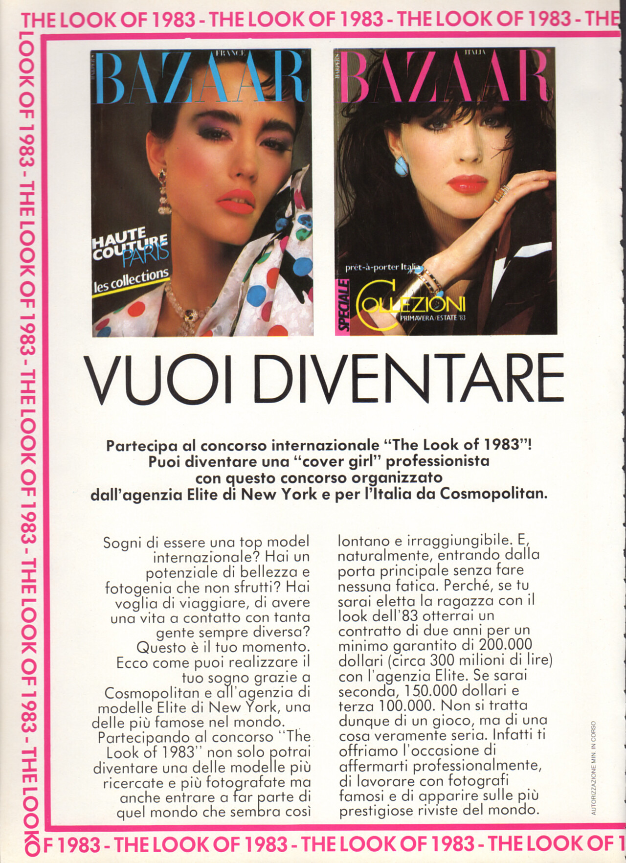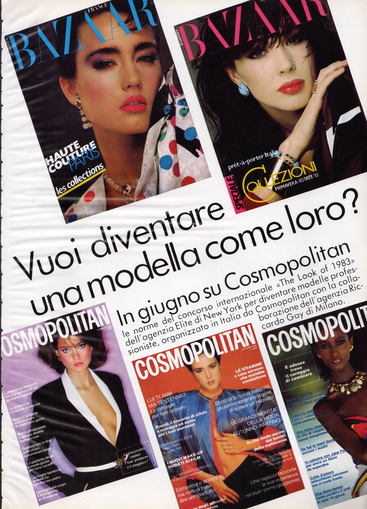 HARPER`S BAZAAR COSMOPOLITAN magazine advertisement - COSMOPOLITAN Italy May 1983 - also showing Julie Wolfe, Joanne Russell, Carol Alt