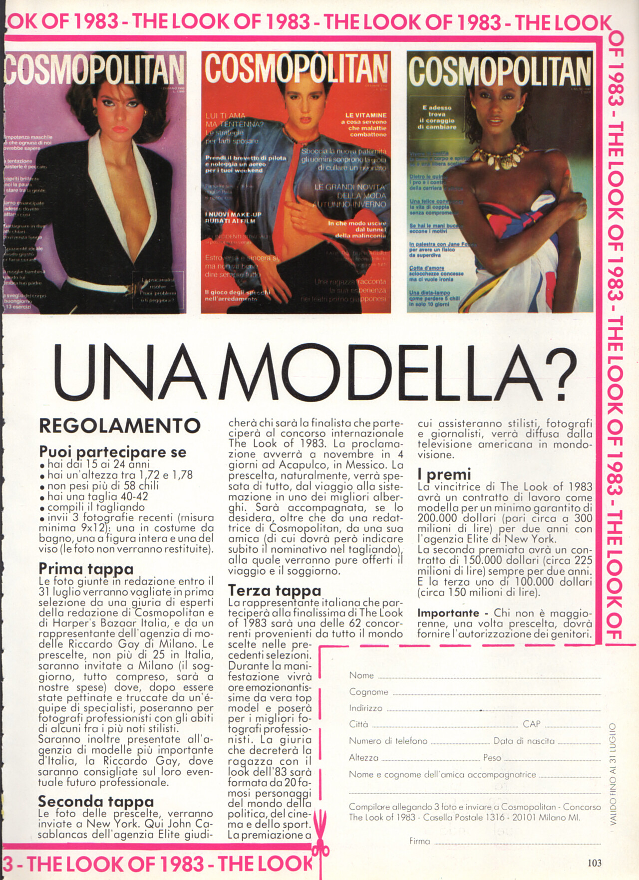 "VUOI DIVENTARE UNA MODELLA?" - COSMOPOLITAN Italy June 1983 - also showing Julie Wolfe, Joanne Russell, Carol Alt