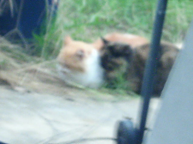 We call them Orangesicle and Pretty Girl. they tend to try to dodge the camera when they see me with it. It's blurry because I was in a hurry so they wouldn't run.