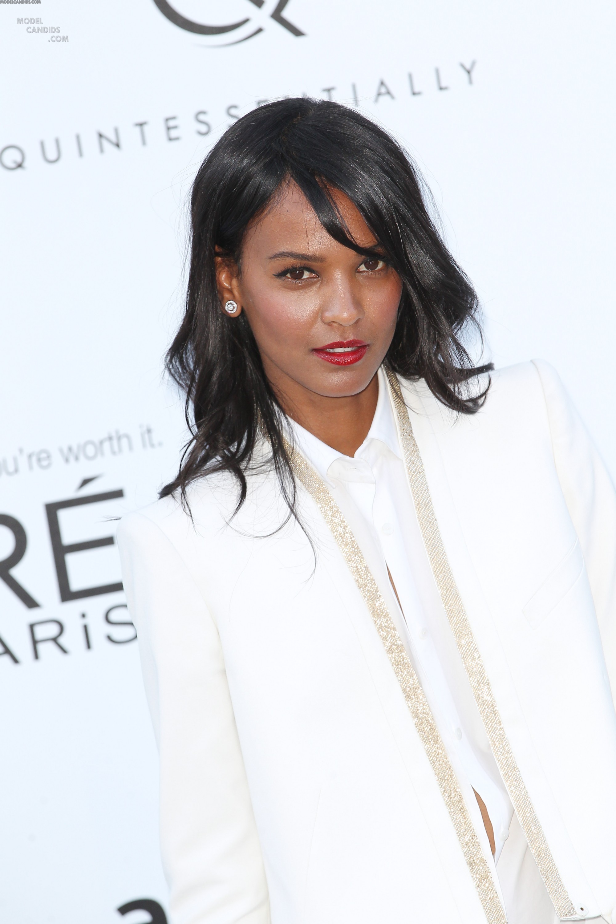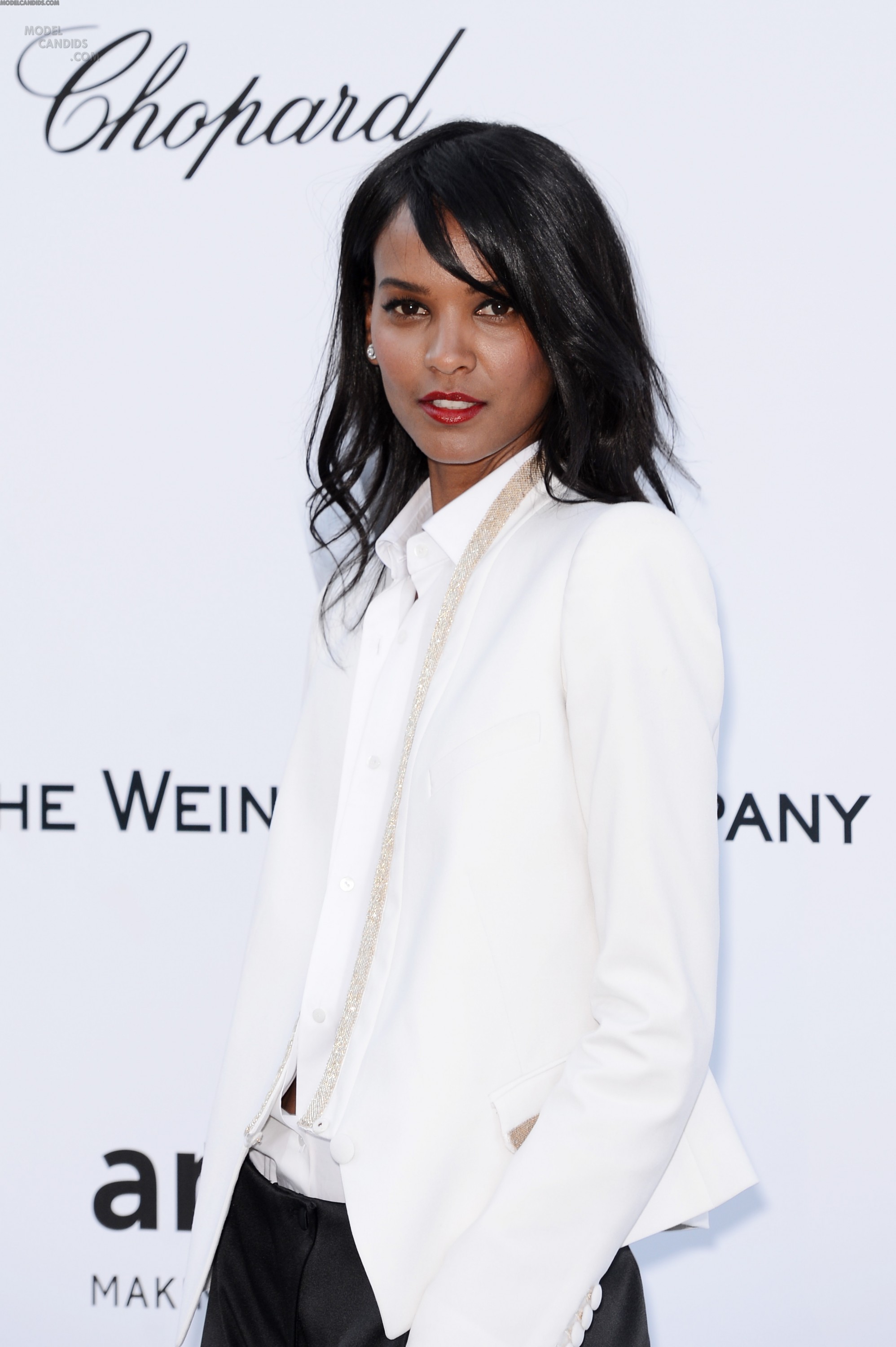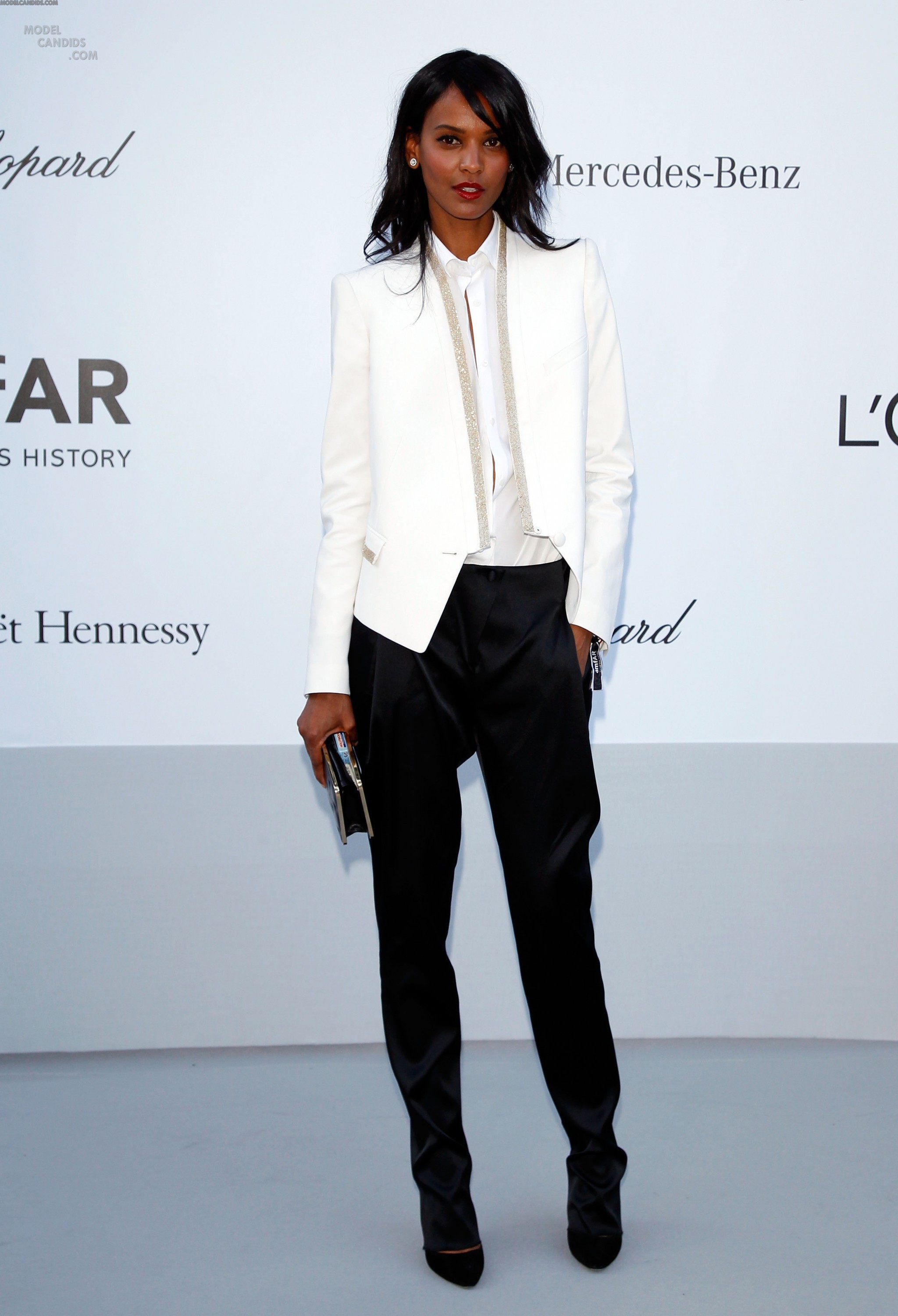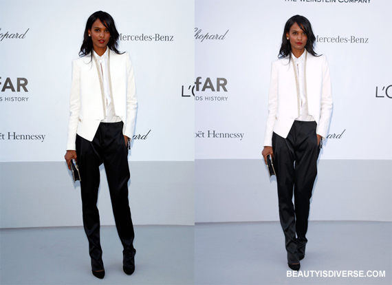 Of course Liya Kebede looked cooler than everyone else in her beaded white tuxedo jacket and loose-fitting trousers—she's a supermodel. The stunner kept her white blouse unbuttoned, adding an extra dose of sex appeal to the look.