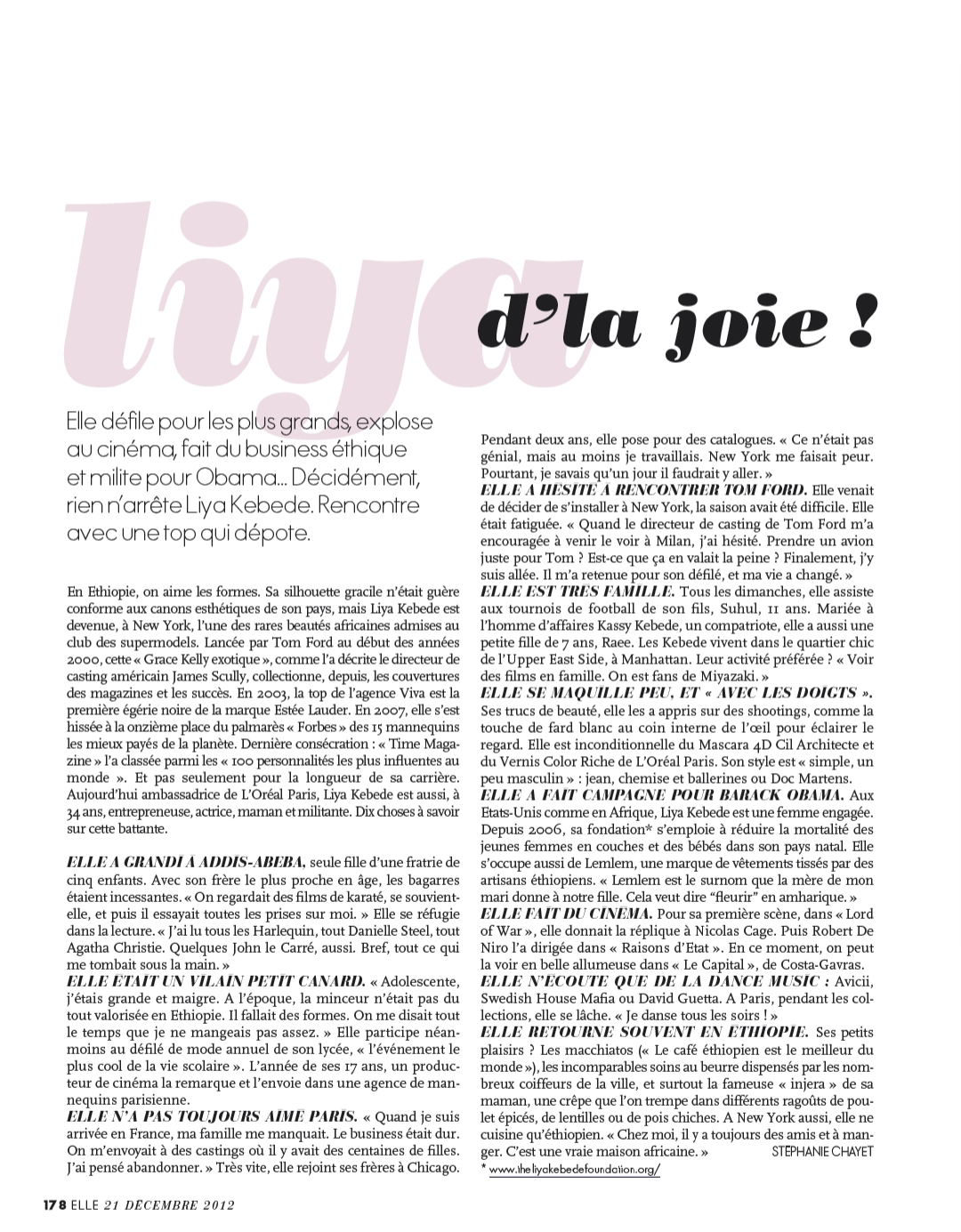 Liya Kebede Amica April 2013