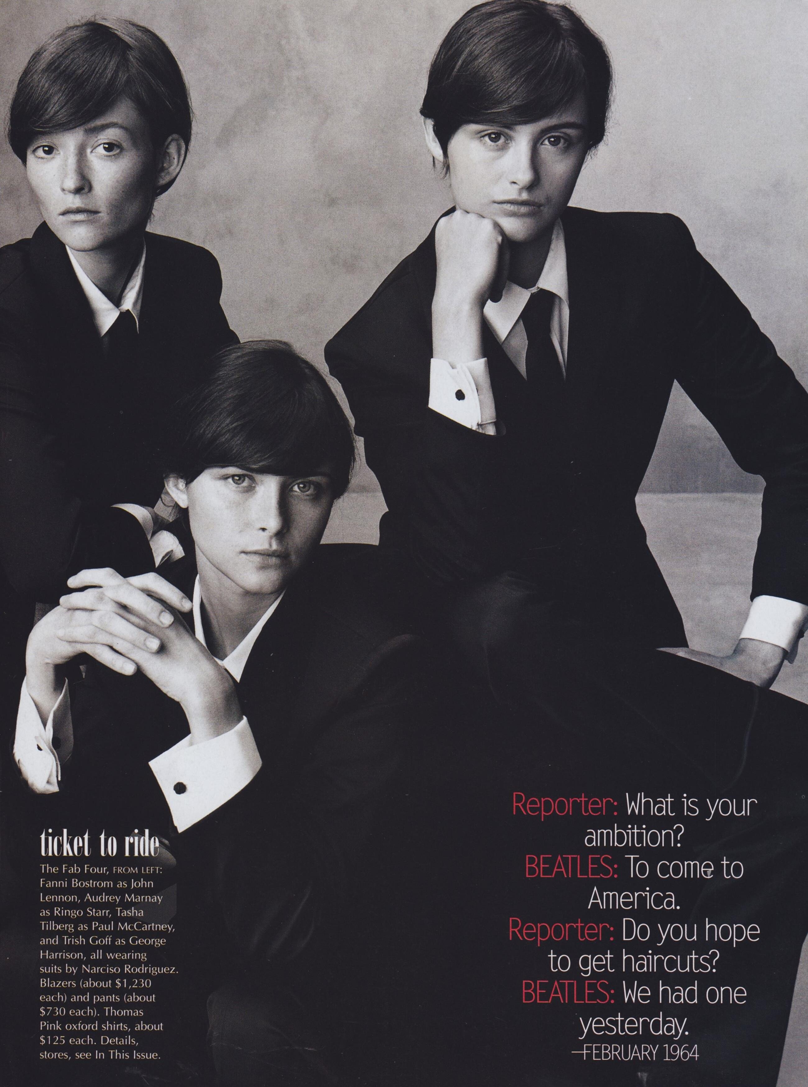 Models: Devon Aoki, Ben Northover, Fanni Böstrum, Audrey Marnay, Tasha Tilberg, Trish Goff, Sophie Dahl, Kiara Kabukuru, Jacquetta Wheeler, Erin O'Connor, Eleonora "Bimba" Bose, Bridget Hall, An Oost, Carolyn Murphy, Jake Schroeder, Omahyra Motta, Hannelore Knuts, Diane Meszaros, Cyrille Victor, Matt Duffie, Karen Elson & Karolina Kurková