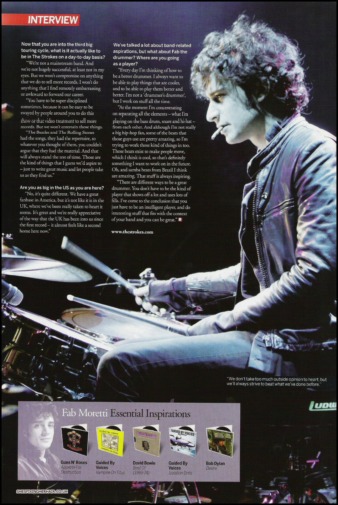 Fabrizio listens to Guns and Roses. Slash was featured in The Strokes video "Someday"