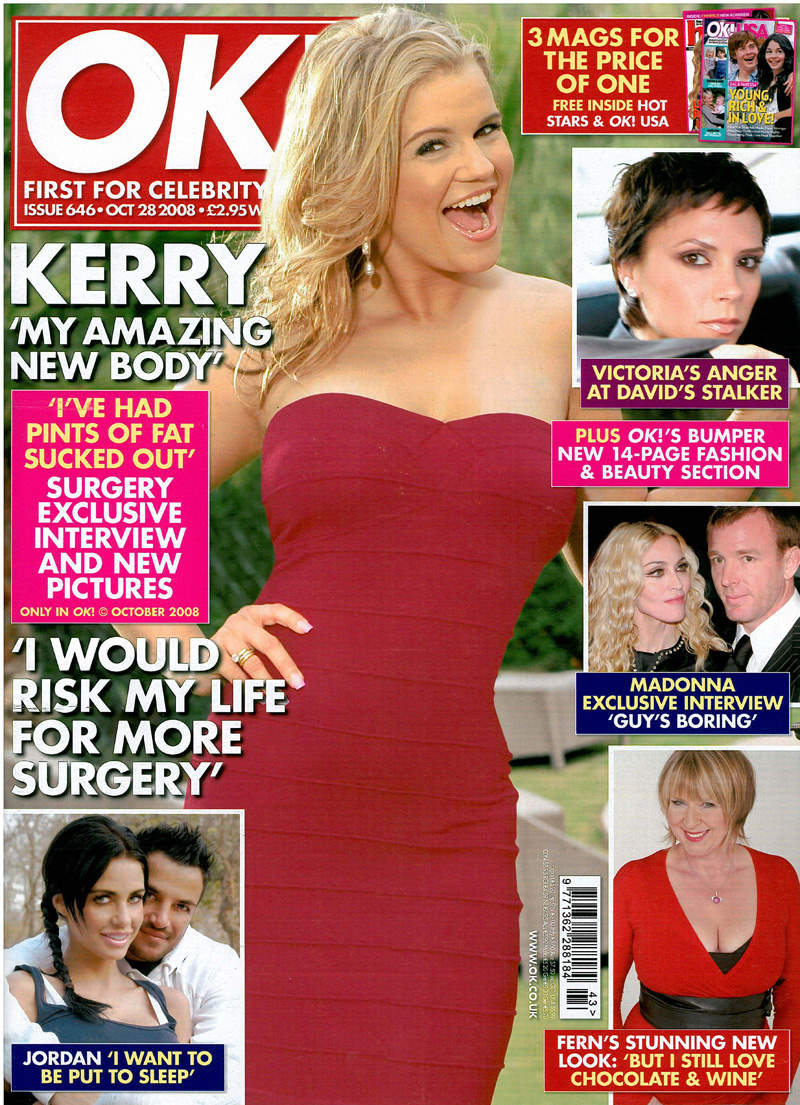 Kerry used to have a regular column in OK! Magazine, and has the job of being the spokesperson for Iceland frozen food stores in newspaper and television advertisements and has also been paid to promote Asda. She lost her Iceland Contract in August 2009.