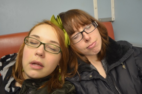 (taken on the train ride home around 7pm. Hat hair abounds)