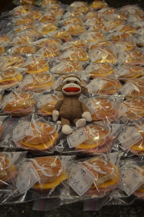 We passed out 80 sandwiches to the homeless.