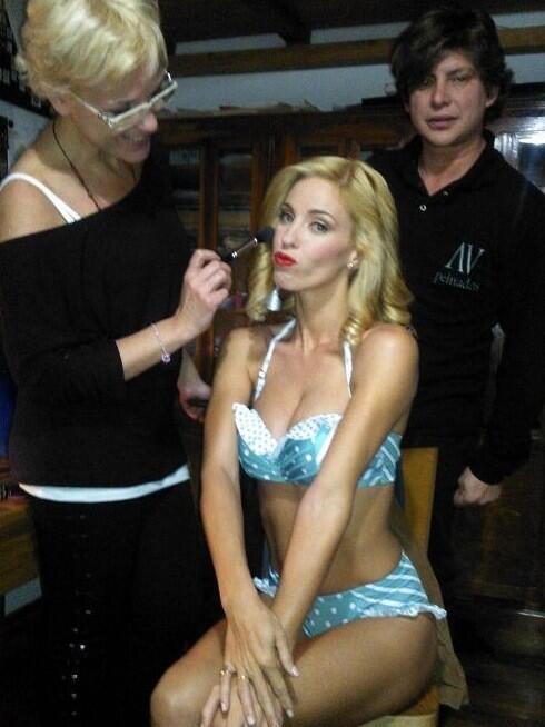 Rocio Guirao Diaz (Argentinian Model) almost naked wearing only a "conchero" at the theater:
