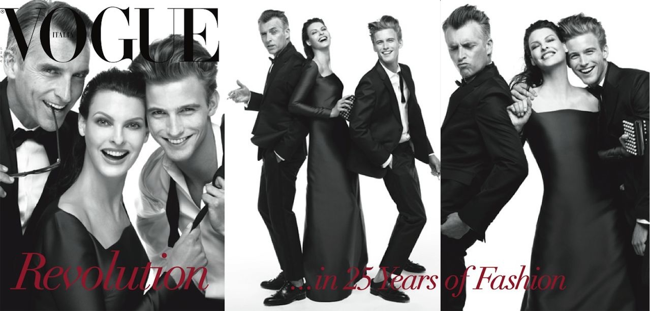 His on the cover of Vogue Italia July 2013 with Linda Evangelista