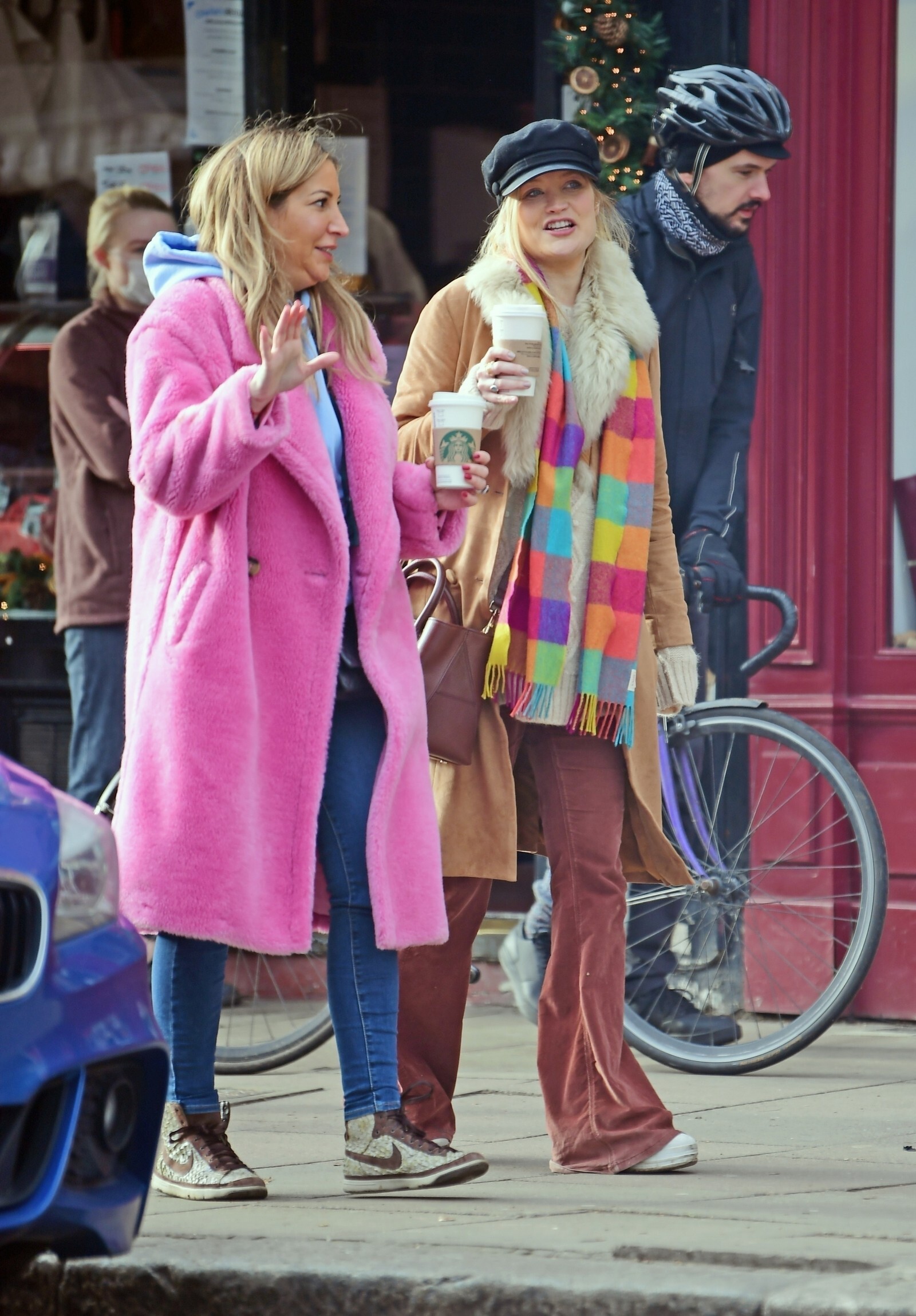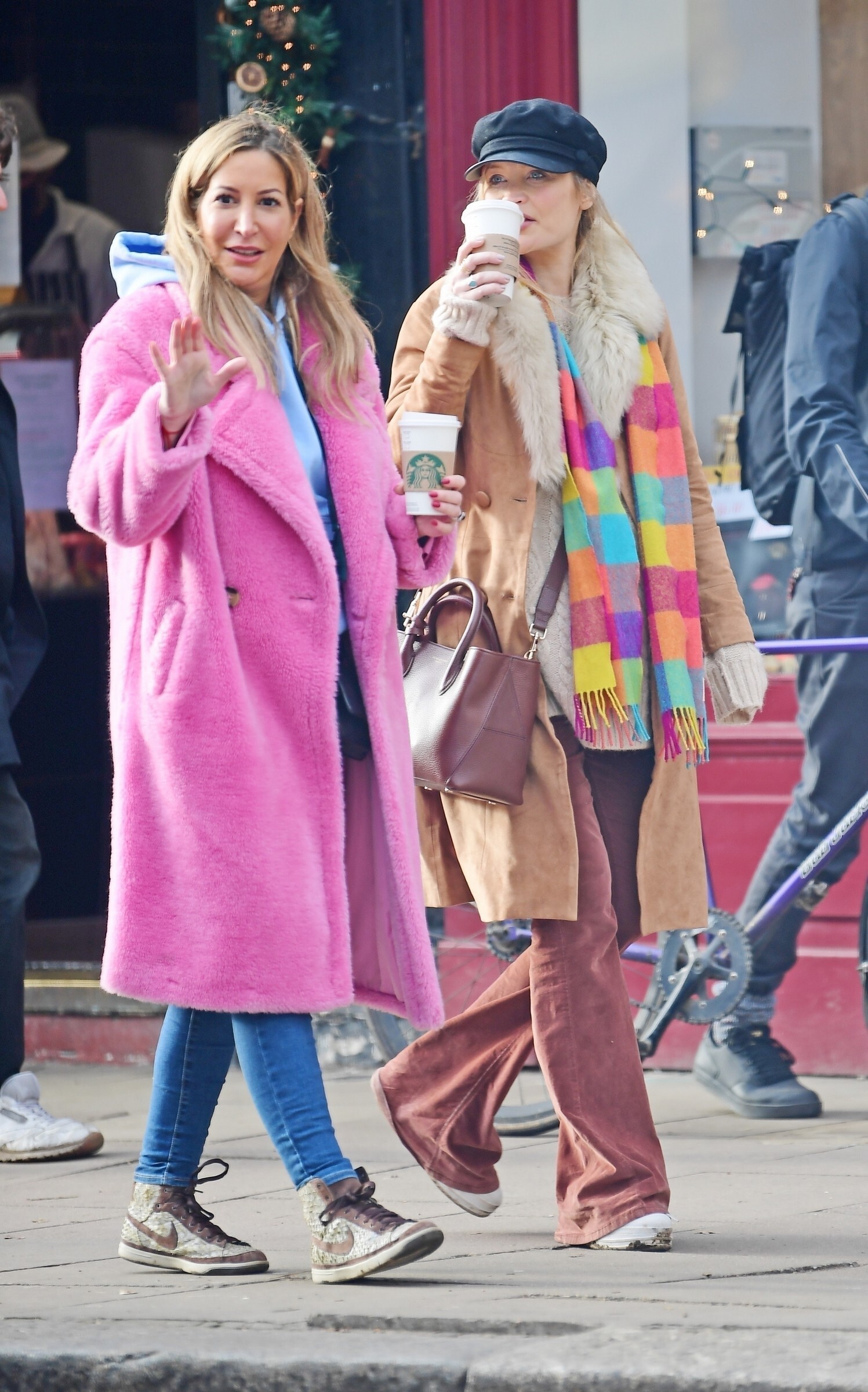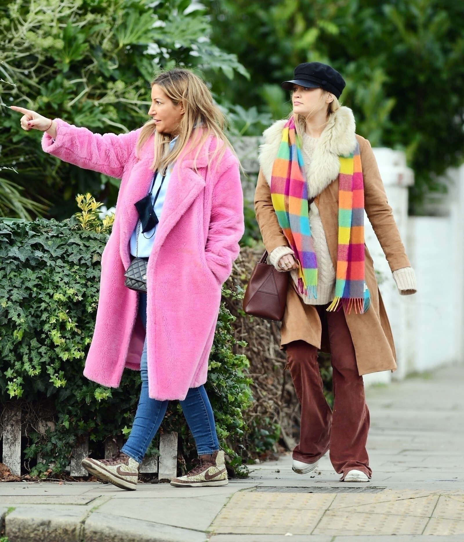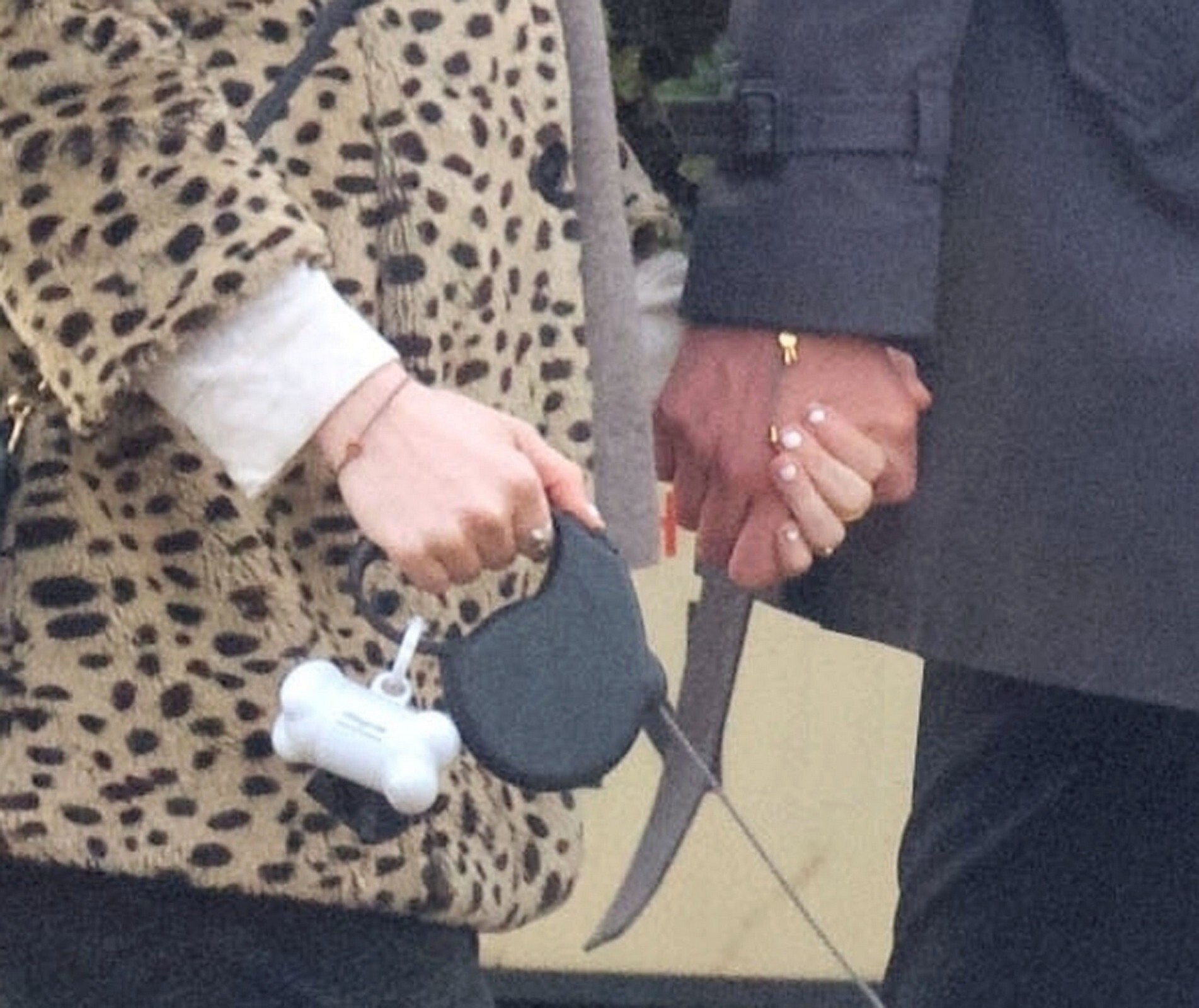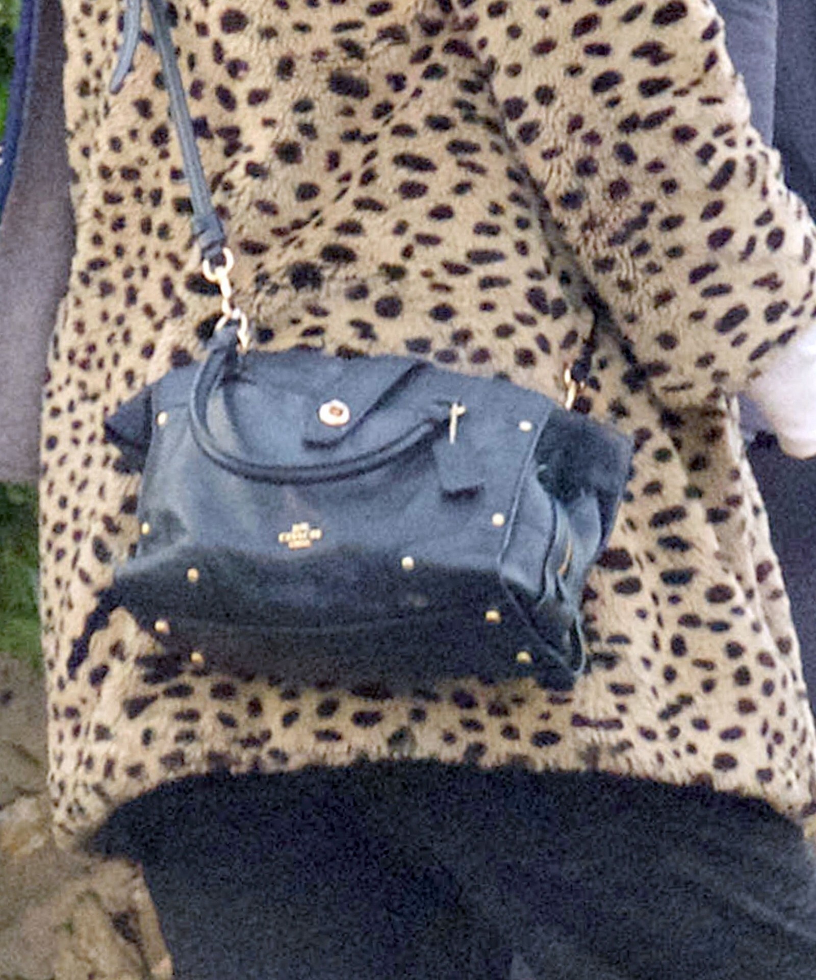 Pregnant Laura Whitmore bundles up in a fluffy brown jacket as she joins husband Iain Stirling on a dog walk
