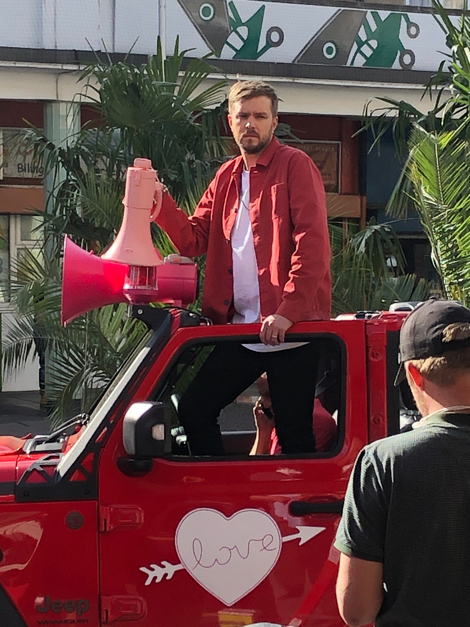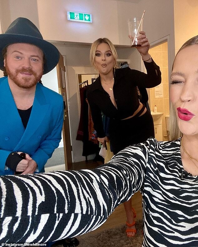 displayed her growing baby bump in a new stunning snap while filming for Celebrity Juice