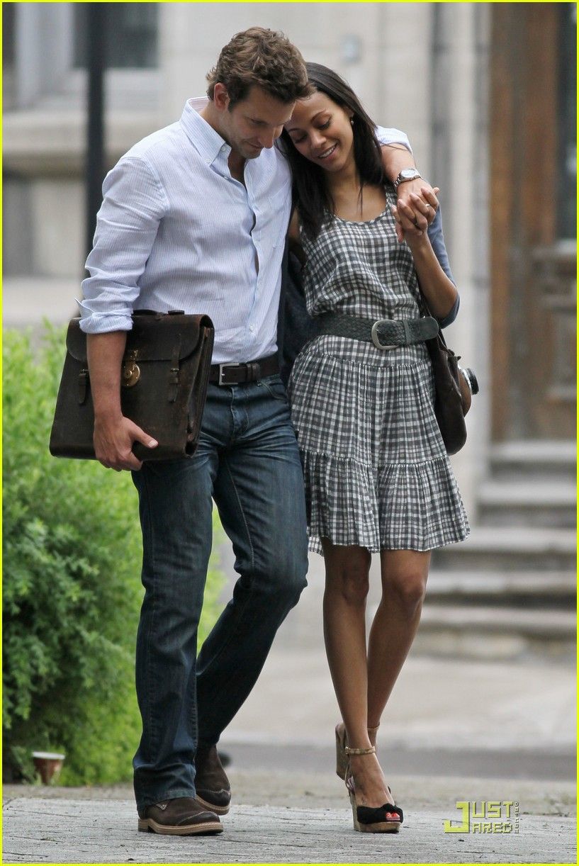 Bradley Cooper and Zoe Saldana lock lips while filming their new movie, The Words on June 7 in Montreal, Canada