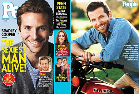 On Sunday, we hear, Cooper was photographed for People's Sexiest Man Alive issue at the Fort Washington estate of Advanta chief executive Dennis Alter. Alter, whose home is for sale for $30 million, is said to be a friend of Cooper's; he didn't return a request for comment yesterday. Cooper's publicist last week denied that the actor was being photographed for People, and said that the shoot was for another magazine doing a story about "Hangover 2."