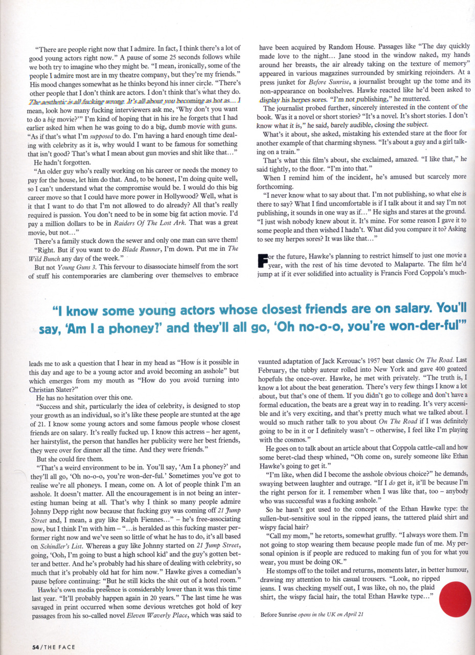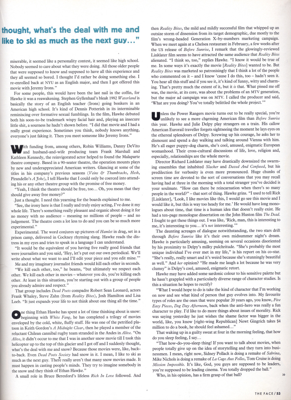 Before Sunrise is one of my all-time favorite movies. Love Ethan Hawke, great actor.