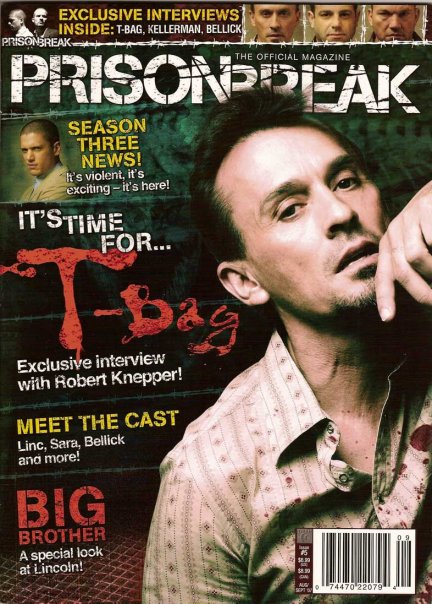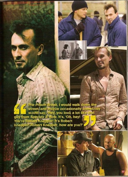Robert Lyle Knepper (born July 8, 1959) is an American actor. He is best known for starring as Theodore "T-Bag" Bagwell in the Fox network's drama series, Prison Break, for which he was nominated for a Satellite Award. He has also appeared in the films Hitman (2007) and Transporter 3 (2008), and joined the cast of Heroes for its fourth season. Most recently, he joined the cast of Stargate Universe for its second season, which has started airing in the US in the 2010 fall season. Knepper is set to reprise his role as Theodore "T-Bag" Bagwell in the upcoming series Breakout Kings.