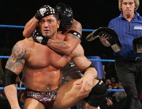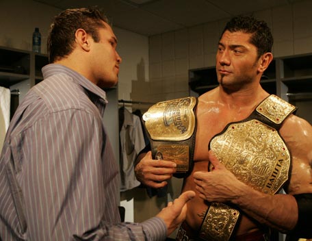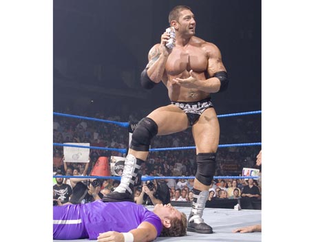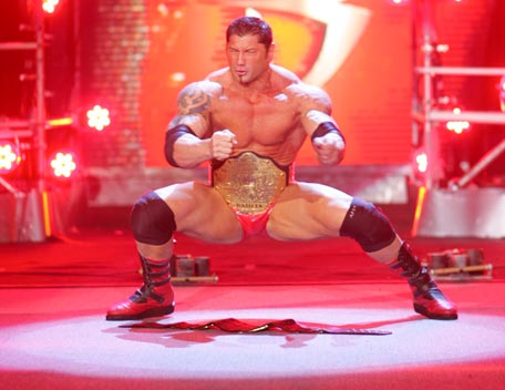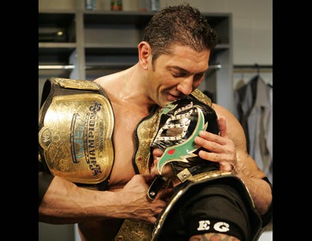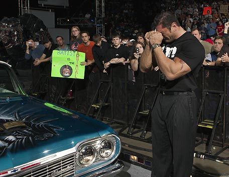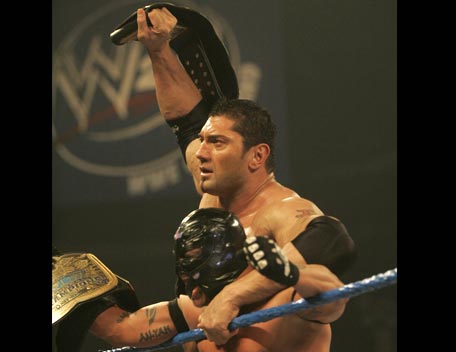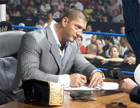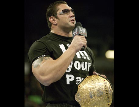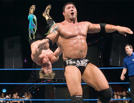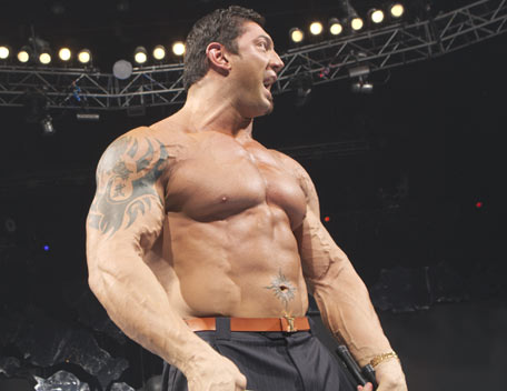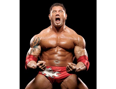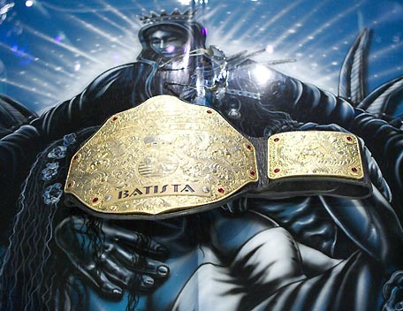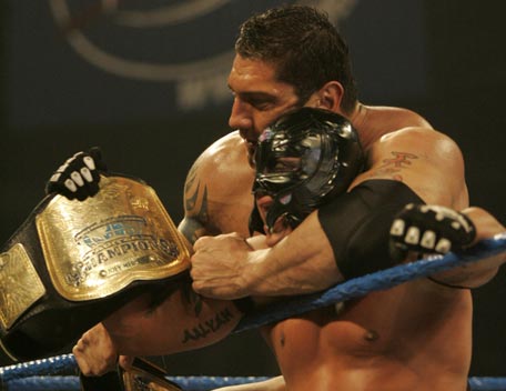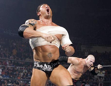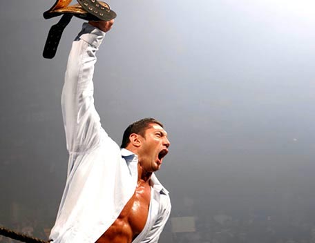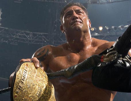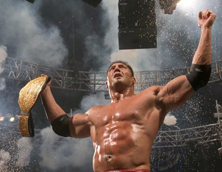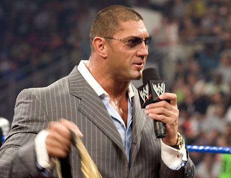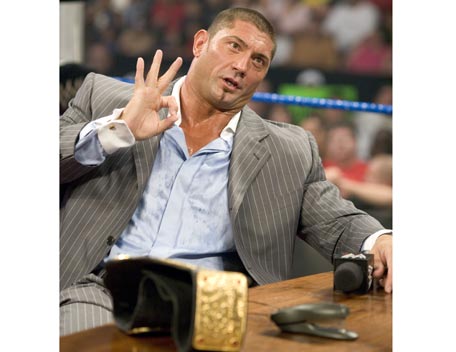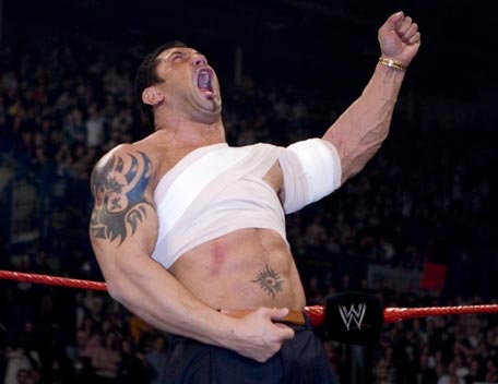 Decked out in expensive shades, apocalyptic tattoos and dressing in slick suits, Batista has the presence of the World Heavyweight Champion, however get him angry and you will bare witness to