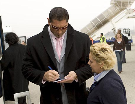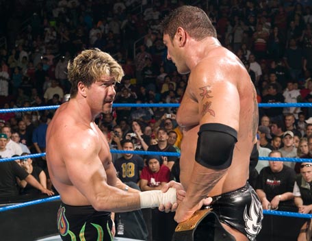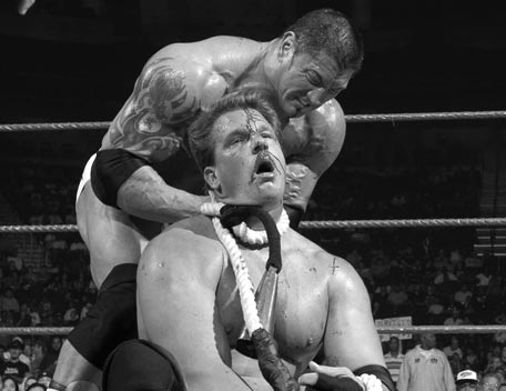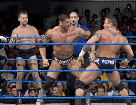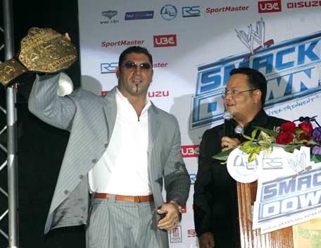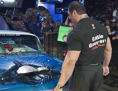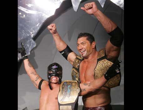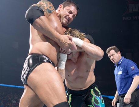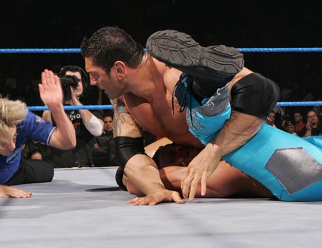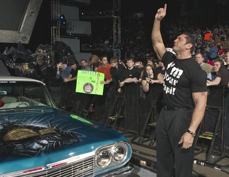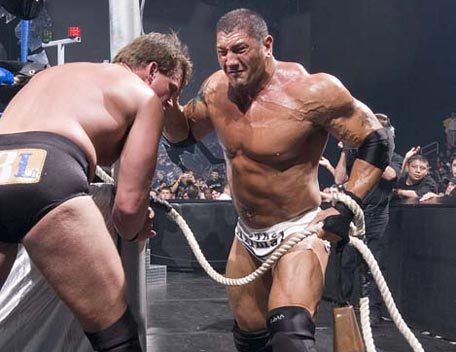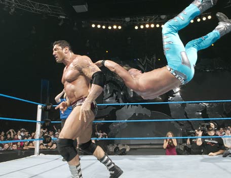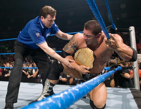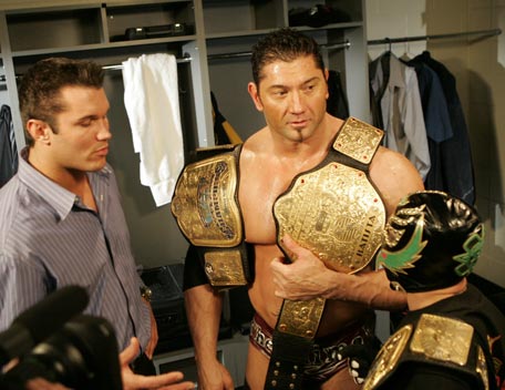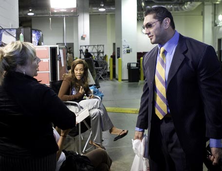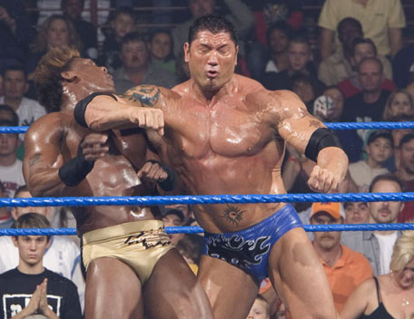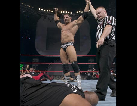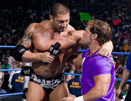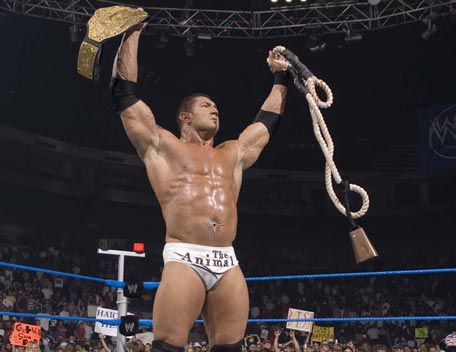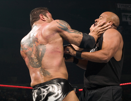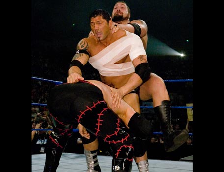 Decked out in expensive shades, apocalyptic tattoos and dressing in slick suits, Batista has the presence of the World Heavyweight Champion, however get him angry and you will bare witness to