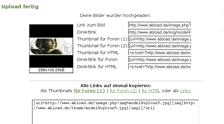 You upload your picture to Abload. Then show your picture as Thumbs on Bellazon :
