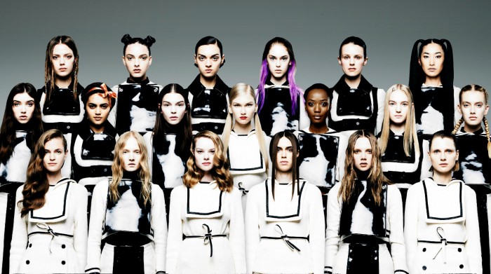 As anyone with an eye on the modeling industry can tell you, the upcoming September shows will be ruled by the new generation of catwalkers. GARAGE pays tribute to this exciting group of established runway girls and fresh faces with a cheeky editorial by George Harvey Themed around the fictional, St. Garage school – an all-girls establishment specializing in cultivating intelligence, poise and of a chic sense of style – the story depicts each girl in a custom Meadham Kirchhoff uniform as they pose for the year book. Dressed as the prerequisite high school cliques – mean girls, jocks, nerds, etc. – the promising cast of up & comers makes for an excellent student body.