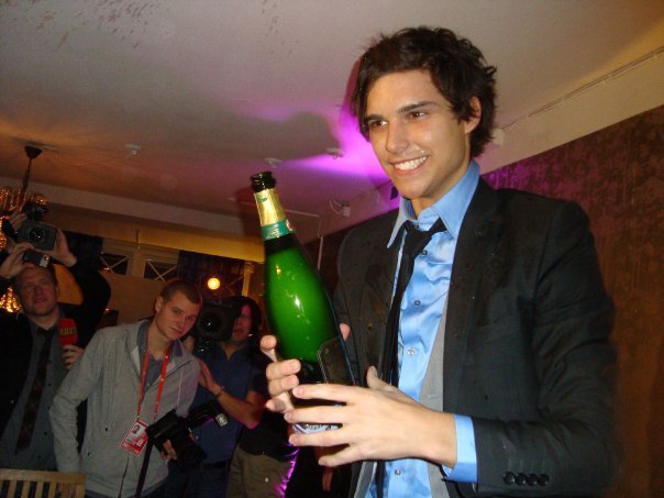 When Julia Stars met Eric, it has been two days since the final of Melodifestival where he didn’t only broke the glass on stage, but also broke the whole competition! It is not surprising that there is a tired pop star who sits on the sofa with glass of orange juice in his hand. He has done interviews without rest and don’t even had time to sleep in his own bed! He’s really glad that he won the contest even if he’s tired!