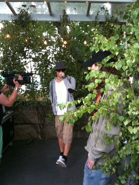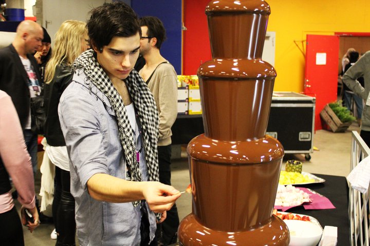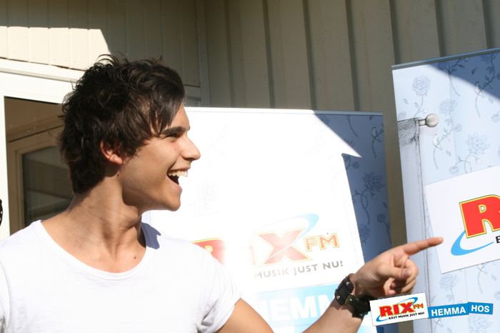 After the interview, Eric set up to take pictures, he used a window’s reflection to fix his hair, he’s ready and looking gorgeous! When I got there I see a large suitcase on the floor full of clothes. Eric says that it was from the final, and that he hadn’t found time to unpack. I’m trying to peek and see if I can find something exciting, but unfortunately, only Eric Saade’s dirty laundry.