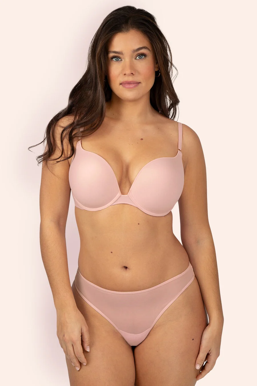 She is very pretty she looks like barbara palvin. I wouldn't consired her + size, she seem normal 2 me. She has a very pretty face.