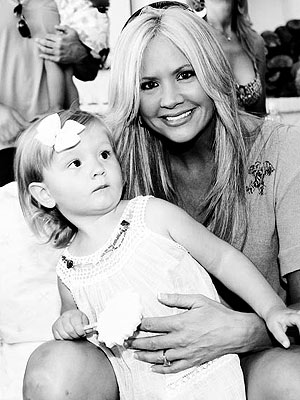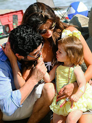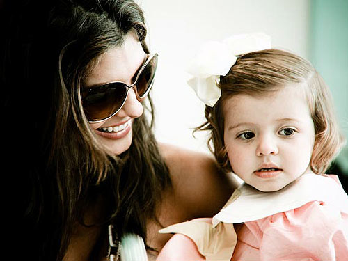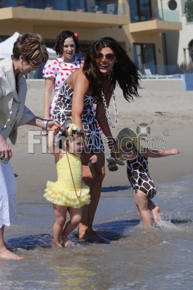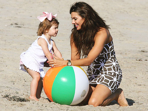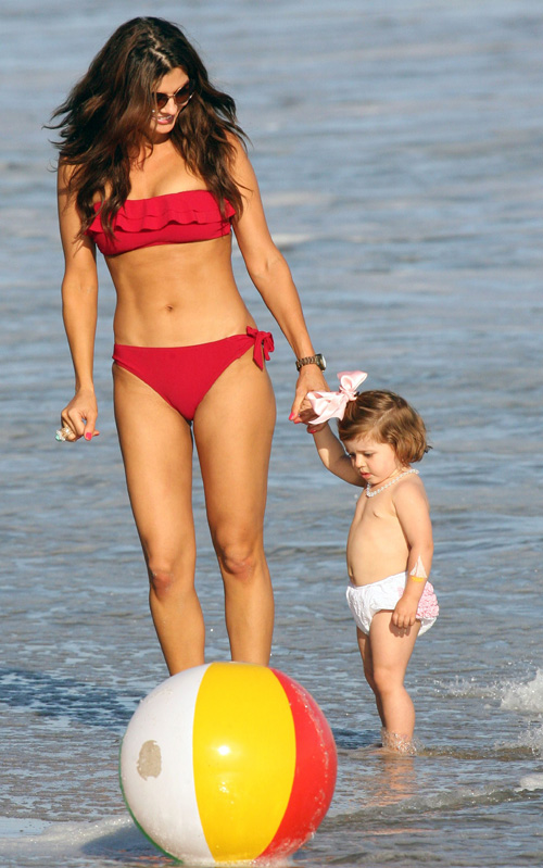 What a doll! Estela Monteverde, in ruffled swim bottoms and a huge pink hairbow, spent her 2nd birthday party yesterday with her model mom Ali Landry at a Malibu beach. Best wishes to the birthday girl!