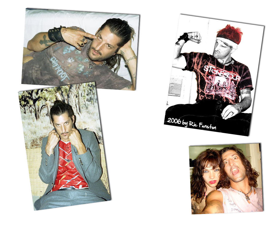So it was trying to figure out– 8 months? 8 months, just for the, just for the shooting, so, yeah. And I went back afterwards – so, actually everything that I have, is like, a sample – and when I got back, – when I decided to start these drawings, jackets from the 1800s, very tailored suits, it was, a complete change. What are you, uh, what are you going to call– My company’s called Six In The Face yuh, but but I haven’t decided. That seems like the most exciting part. The – ? – finding the, I mean maybe it’s the M R – M.R.W. Things that you want to wear Only. Only. And only one collection – one time out and try to get it photographed. Already – I was obsessing for a year and a half and it fucking made me nuts cause L.A. was not the place to do it. At all. So does it have to be Europe? Well I would imagine, yeah. Do you have anyone in mind? That’s what I mean. At the time – and that’s where Magnus comes in – I’ll come up with my top 20 feelings about who I’d like to do it with. I get the feeling that what I’ll do is like Rick Owens – ish – in that world He’s the designer’s designer, someone said to me recently. Really. That’s funny. The cuts are really great. I did a fitting once and the guy in charge just came in, and lay on the sofa with his shoes off while everyone pinned things, and he would say, ”I just want it a bit longer” Rick Owens? No, this other guy. I thought, what a way Yeah, you sit there and watch people drape these things, and you say, maybe ”oh, perfect” It’s the dream of consulting Well, I’d never drawn a suit but I had a lot of books, from the early 1800s to the 40s, like Clark Gable and Bing Crosby. I love – I’d wear a suit every day if it was something that I liked – not like – I mean I drew these crazy technical drawings You did that. Yeah. With a pencil and a ruler (laughter) Are you interested in trading under your name? I have to – I have to buy land. I have to build my stone castle. I’m aware I’m a commodity, but I know that I can put out. It’s just an extension of my art. It’s just a medium. Whatever the fuck it is. So I’m just going to make some clothes that I would wear. I love the stuf by Tom Ford he just made a film I went to the premiere in Paris. He’s so – have you seen it? No. It’s the best film of the year by far, and he’s a very articulate, intelligent person, and it’s a fucking beautiful story. And Colin Firth just fucking murdered it. And that British kid from About a Boy Is that who that kid is? No shit. The young, the Pure White Boy. He did a really good job. And Julianne Moore’s in it as well. I like watching her work but you can fucking tell she’s a mad woman. Her aura is like Glenn Close, and I really wouldn’t want to turn my back on Glenn Close. So when you go to these premieres… I hide. I saw Tom Ford, but uh None of them are really comfortable there. They put on their red carpet face. I saw really early on that I was not about that scene. I’ve had periods where I was alright, and then others, like when I went out with Madonna it was a fucking nightmare – I hated it, I hated being anywhere in public with her. But at the same time I fucking was in love with her, and we would, we would was it an art game? Were you John and Yoko? It’s a game. But she’s not the sort of person that you could ever have a relationship with. But that’s alright… that’s what she created. This identity that she has a hard time divorcing herself, like – 8 o’clock at night – depending on bedtime, was the only time she would turn it off, and so she wrote in her diary, like writing in her diary every night before bed, the plan for the next day for her assistants. A list. How old were you 27. It’s almost 20 years ago. She’s older than you then She’s an amazing woman. Our relationship was hours and hours and hours of talking, but the thing is she wanted to be like a mother. You realised recently that you’re a control freak… Yeah. She seems like a control freak. I think I was very inspired by that, in life How does that dictate things now? Everyone has to find out for themselves, if you’re ready to hear it – first you’re not ready to hear it, then it doesn’t mean you’re going to act on it – it took me years to finally get sober, and cleansing and all this shit that I’m into, the death of three men in my life, that changed my life, in one year, my father, my grandfather, my older brother – (noise) – it was all in a row, it just threw me into an acid trip. Literally – but it definitely cleared my mind. I had never really invested myself. I took all my clothes out my closet and started chopping them into pieces, and my wife said, Oh, you’re a fucking weirdo, and I went out and bought a sewing machine. Whatever I’m doing, I’m fucking doing it – I wanted to paint this little fucking aborted foetus, and I spent months on it making it as exact as I could. You wanted to make the perfect abortion? But it’s a very humourous painting, in a way. And then I see this cat in a mask – because my partner paints a mask in the middle of the fucking thing, he’s always painting dead centre in the fucking middle. I said, what am I supposed to do with that? I’ll make it a cat. But it’s an impossible cat to paint, the way the fur is… what, you paint the same paintings? Yes. I have to respond to it. Is anyone in charge? I have – if I had to say – it would be me: I’m more opinionated, he’s more soft – not when he’s painting but, he did this painting which was supposedly his ex-girlfriend, she left him, like one day she didn’t answer the phone and didn’t for the next six years. So he draws, he does all these paintings commemorating this relationship with this chick and with one of them, he’s like, ”That’s my girlfriend”. I said, You fuck. So in the painting I – I cut her head off. He kept talking and talking abo