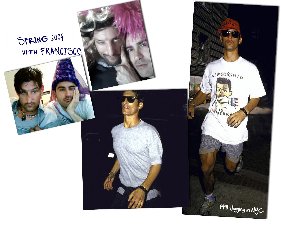 So, you know I had a stylist who was, really early on, really early 90s – he was like, Oh, I know you – you were a hustler and a porno star, you did all these videos… he just had this mouth. So somehow this reputation grew out of an identity, someone told Madonna I was a hustler on the Boulevard and she was bummed out, she came home and asked me about it – I said, We just spent days unloading all our guts on each other. I would have told you if I was a hustler. She should know better… but in essence, when you roll back and look at it, I was a hustler – I was scouted by my professor at college who was finding people for Jim French what were you doing at college Nothing – general ed. failing miserably, couldn’t handle it, but I worked with all these photographers and they were really great people in the Bay Area, they shot my modelling pictures for me and I would trade off doing nudes for them. That’s how it started. They would pay me – I would come in for a photo session they would pay me like 50 bucks, 70 bucks, and once in a while I got a little blowjob out of the deal with it, this little guy, so that was my first experience with homosexuality, but I never identified it as that, I just thought, Oh I got a boner, why? laying there and being massaged by some old dude he’s totally into it, and I’m like Oh my God, what the hell just happened… when people have this idealised idea of me it puts up a wall, until it gets broken down… do you think you’ve got better as a model, than when you started pfff… I know what I’m giving. Recently I’ve had people say, No, just sit there. So I sometimes I like, I get into a groove and I’m doing the same thing, I guess. So I have to forget – I mean, personally, I would choose the in-between pictures but you’re still posing I pose – I pose my whole life. When I’m driving – down the street, it feels like such a pose.